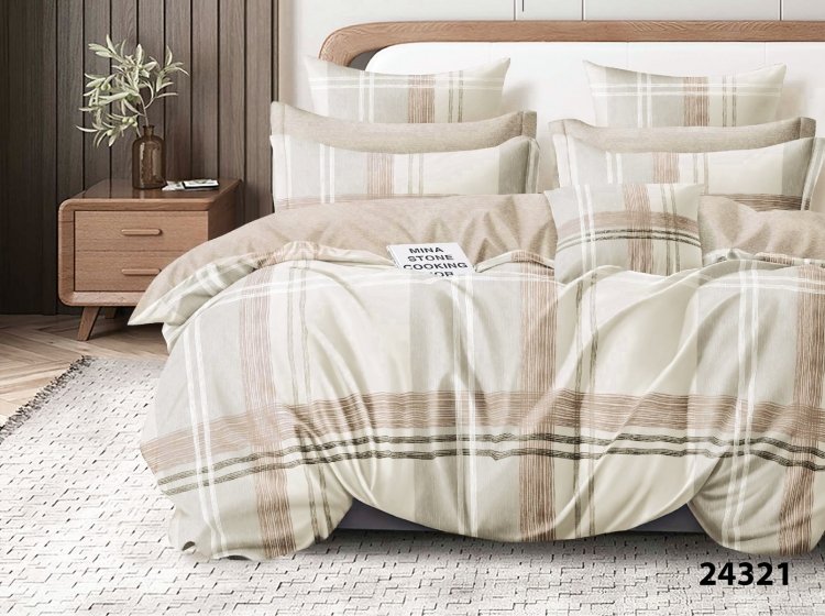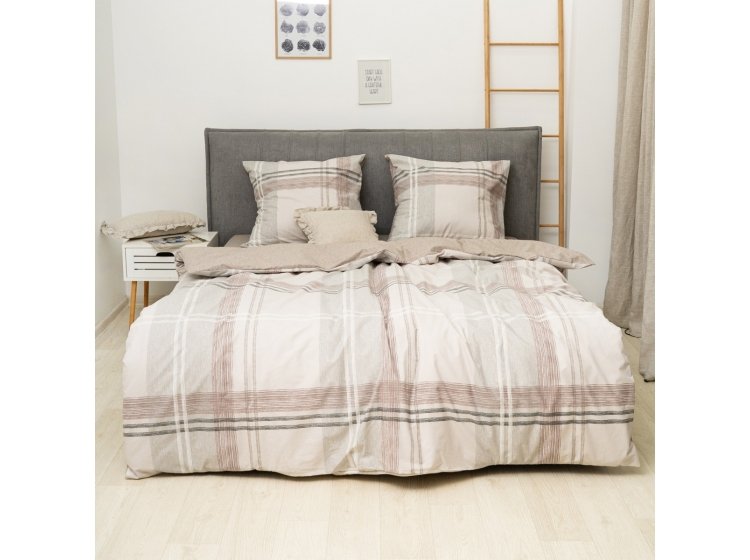 Постільна білизна Viluta із ранфорсу. Модель 24321 виконана в сіро-бежевих тонах з геометричним принтом.