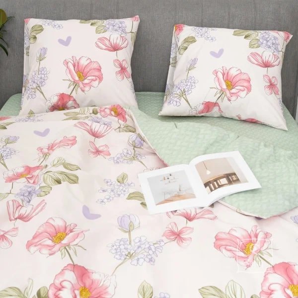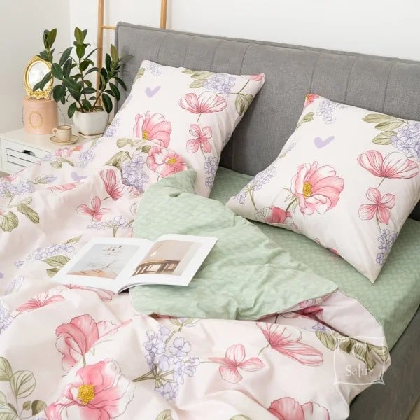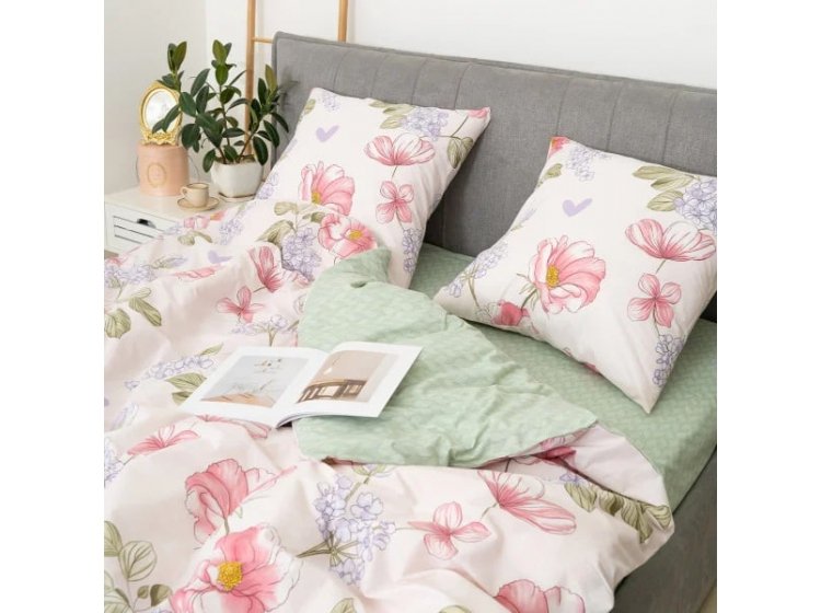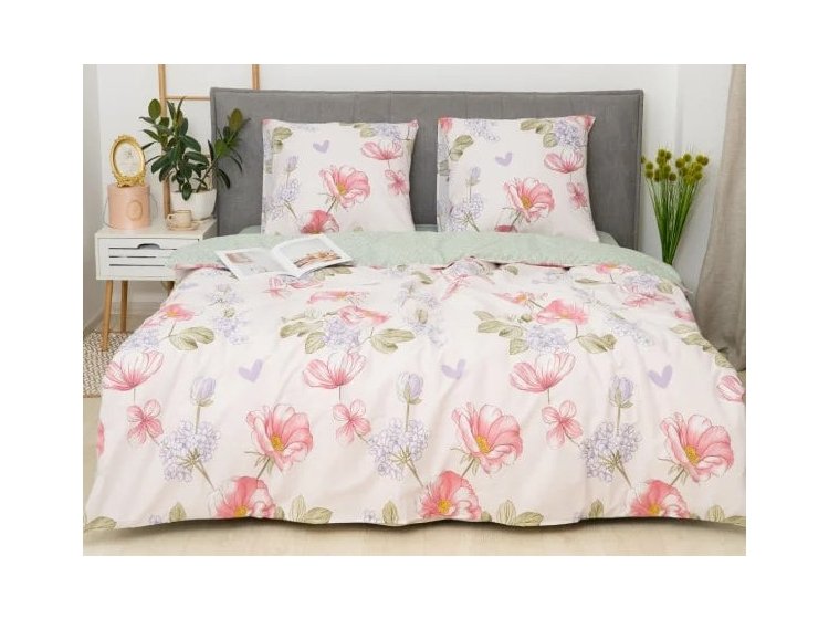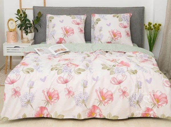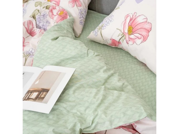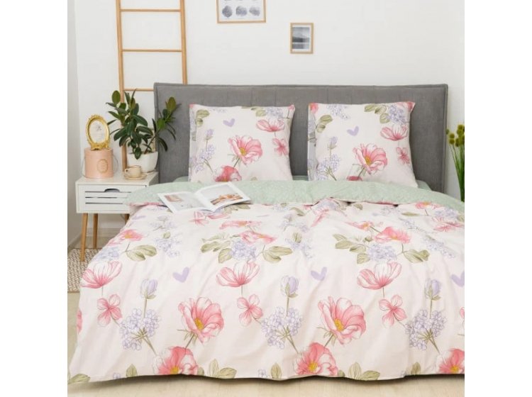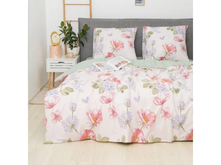 Постільна білизна Viluta із ранфорсу. Модель 25364 виконана у світлих тонах із квітковим принтом.