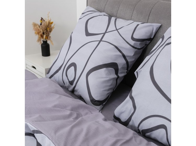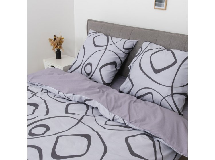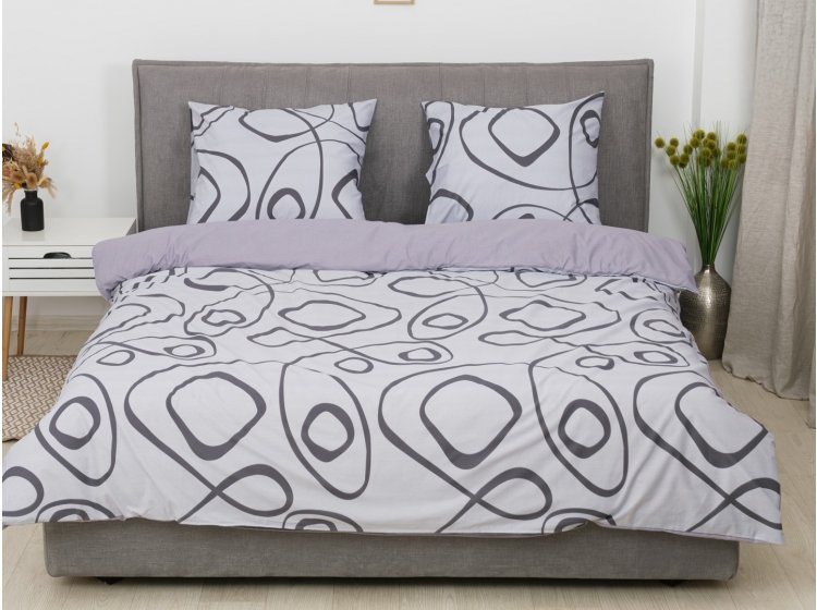 Постільна білизна Viluta із ранфорсу. Модель 25399 виконана у сірих тонах з абстрактним принтом.