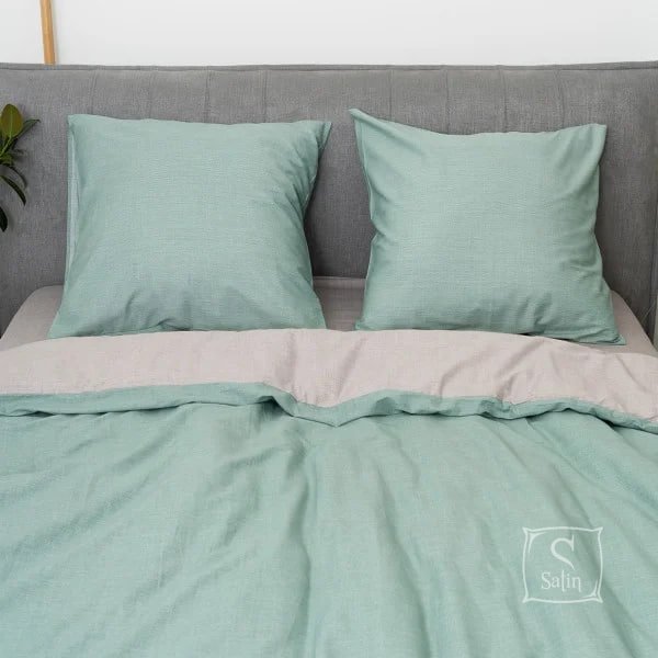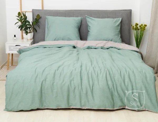 Постільна білизна Viluta 784 в однотонних зелено-сірих тонах пропонує вам затишок та елегантність.