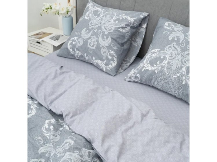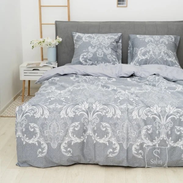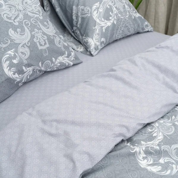 Постільна білизна Viluta 789 у сірих тонах з вензелями пропонує вам затишок та елегантність.