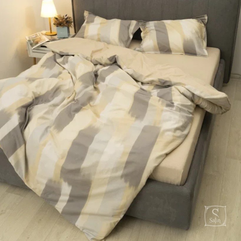 Комплект постільної білизни Viluta Tiare Сатин Deluxe L-004 – це вишукане поєднання різнокольорово-бежевих тонів з абстрактним принтом, яке надасть вашому спальному місцю стиль та елегантність.