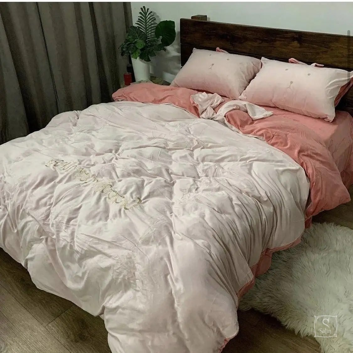 Велюрова постільна білизна Crown Good morning виконано у рожевому кольорі, оздоблено вишивкою, виготовлено з мікрофібри (велюр). Наволочки з вушками та підковдра на блискавці. Тканина досить щільна, але при цьому м'яка та красива. Постільні речі такого типу комфортні, привабливі, прості у догляді і будуть радувати Вас взимку і влітку. Постільна білизна упакована у сумку
