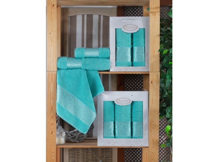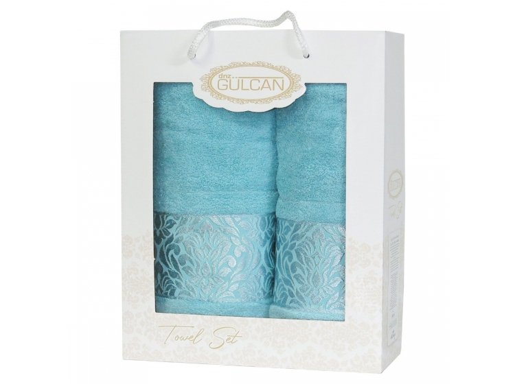 Шикарний набір м'яких махрових рушників Gulcan Cotton Frower Ornament Turkuaz із 100% бавовни бірюзового кольору. Рушники оздоблені вишивкою у вигляді квіткового орнаменту на жакардовому бордюрі. Рушники високої густини (480 г/м2), з пухнастим ворсом. Вироблено у Туреччині.