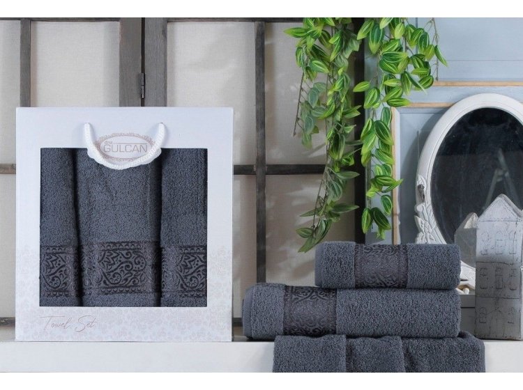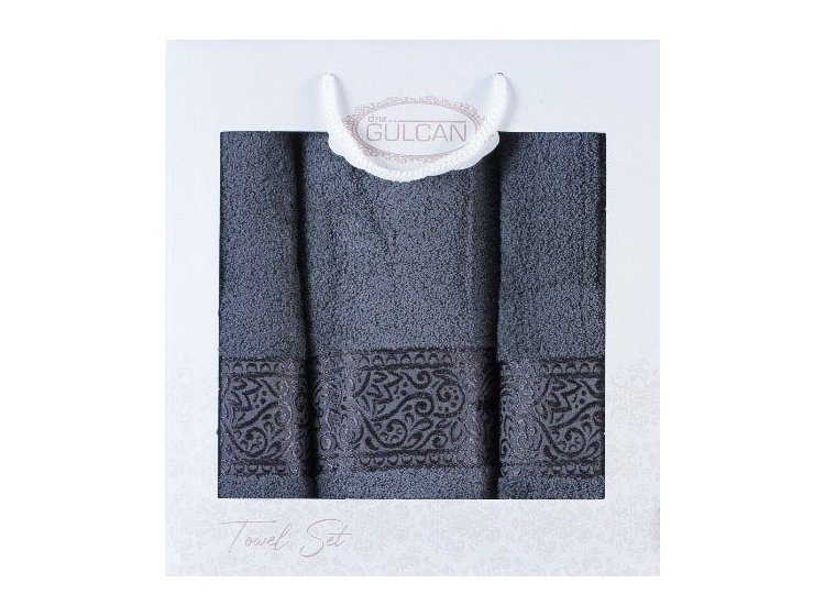 Шикарний набір м'яких махрових рушників Gulcan Ornament dark grey зі 100% бавовни сірого кольору. Рушники оздоблені вишивкою на жакардовому бордюрі. Рушники високої густини (480 г/м2), з пухнастим ворсом. Вироблено у Туреччині.