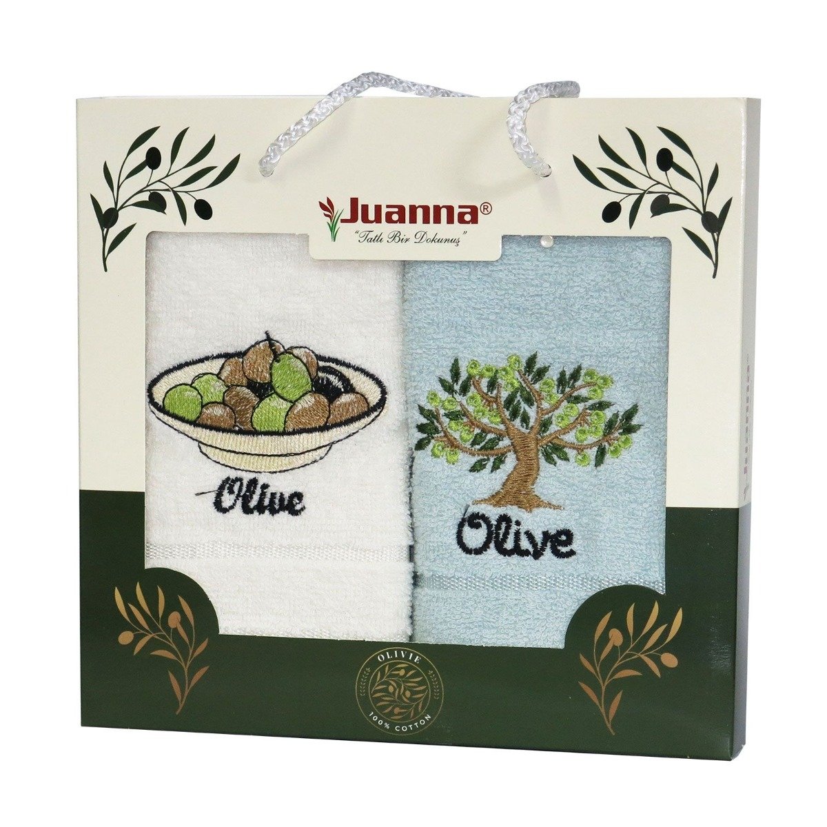 У комплект Nilteks Ozler Juanna Olive входять 2 махрові рушники , виконані в бежево-біло-блакитній колірній гамі. Рушники високої якості підходять як кухонні рушники.
