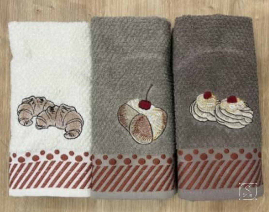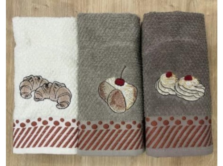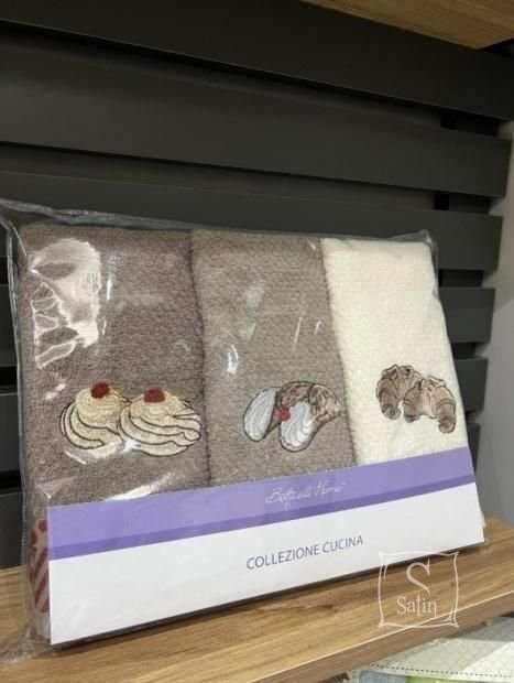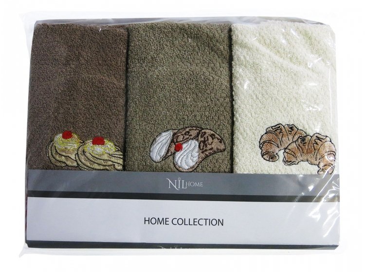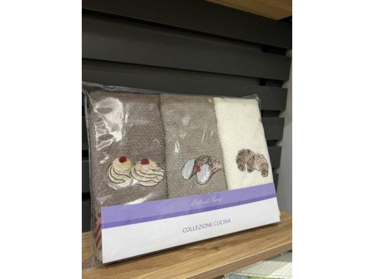 У комплект Nilteks Italian Deserts входять 3 махрові рушники , виконані в різних кольорах із зображенням італійських десертів. Рушники високої якості підходять як кухонні рушники.
