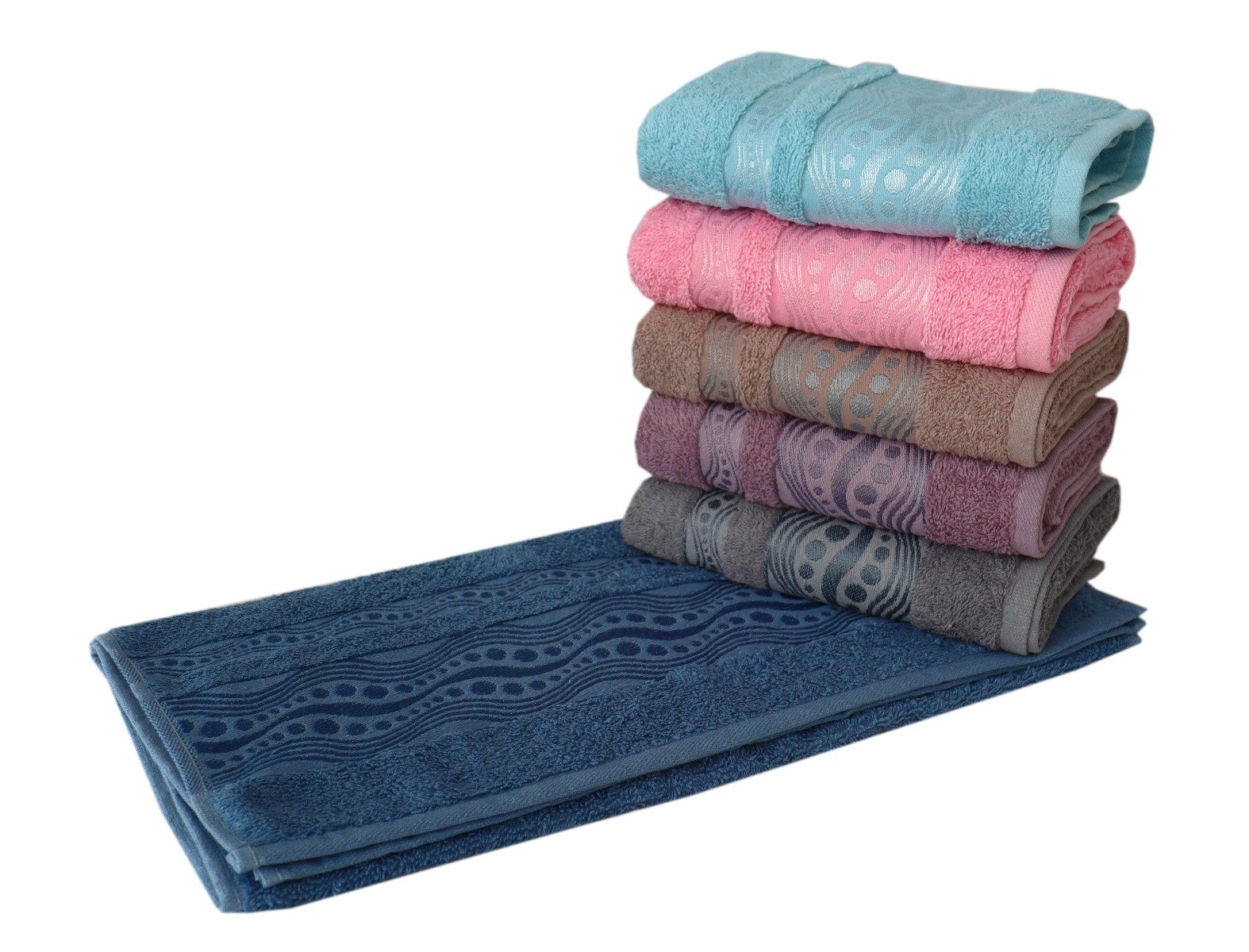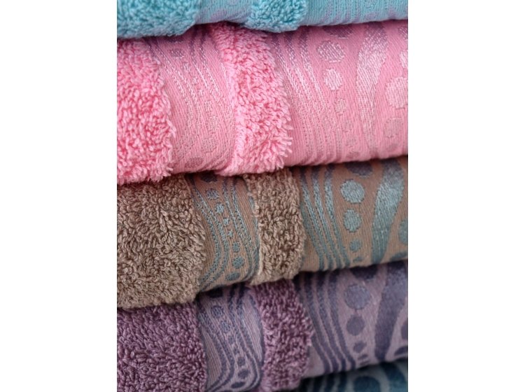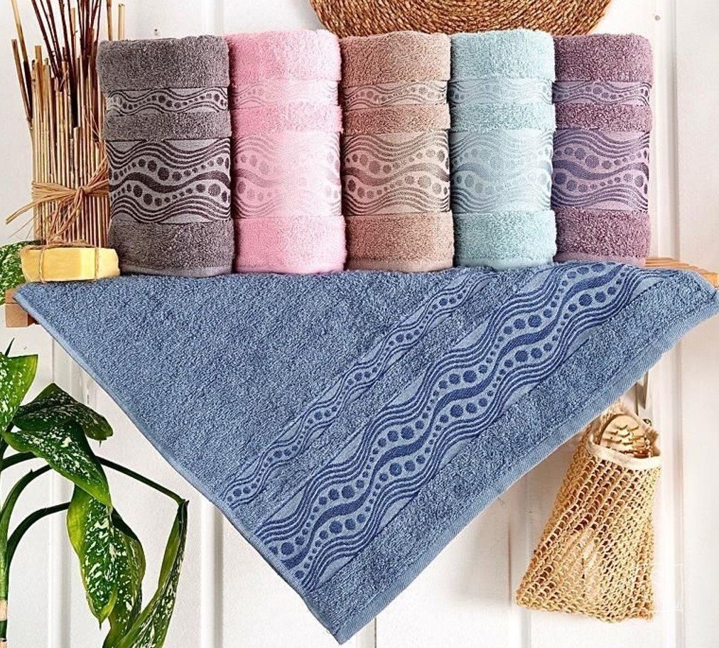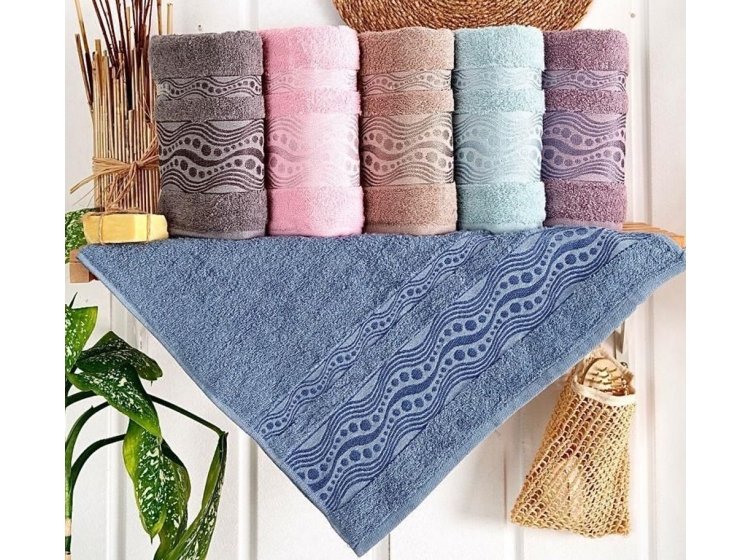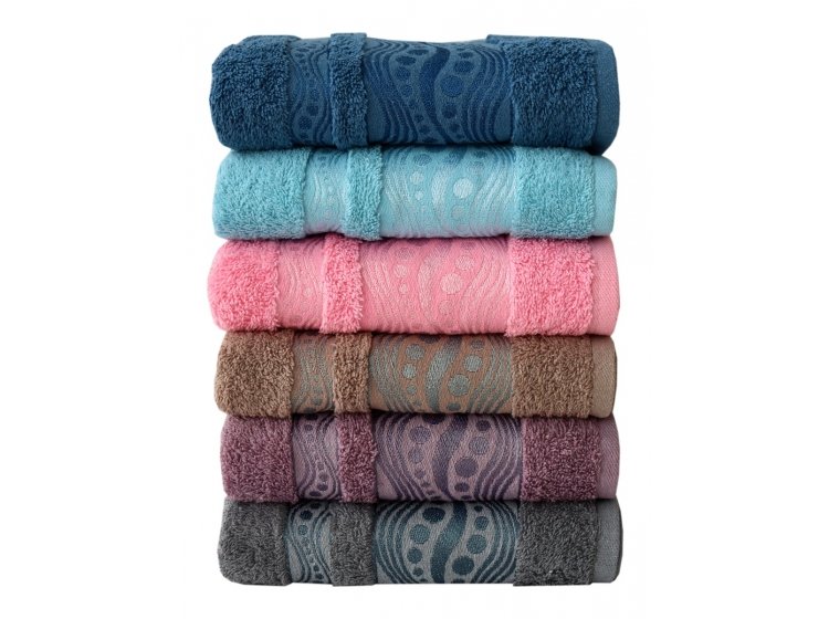 Набір махрових рушників IzziHome Wave складається з 6-ти рушників різних кольорів, виконаних з бавовняної махри гарної щільності (420 г/м²), з м'яким натуральним ворсом та декоративним бордюром з жакардом з візерунком абстракція.