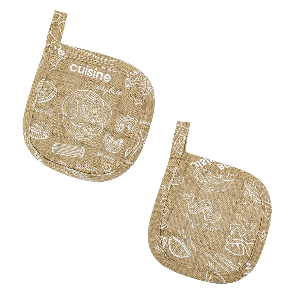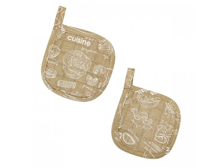 Набір з 2-х прихваток для кухні Home Line Паста бежевий виконаний з візерунком у кухонній тематиці.
