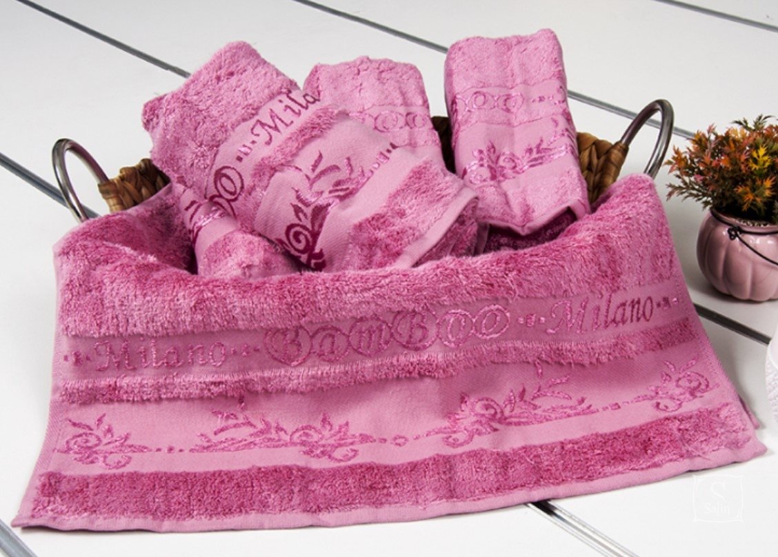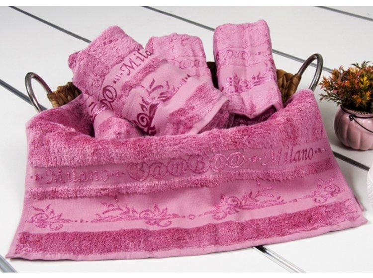 Ніжний махровий бамбуковий рушник Bamboo Milano від турецької торгової марки Romeo Soft виконаний у рожевому кольорі зі 100% бамбукового волокна високої щільності ( 500 г/м² ), прикрашений жакардовим візерунком.