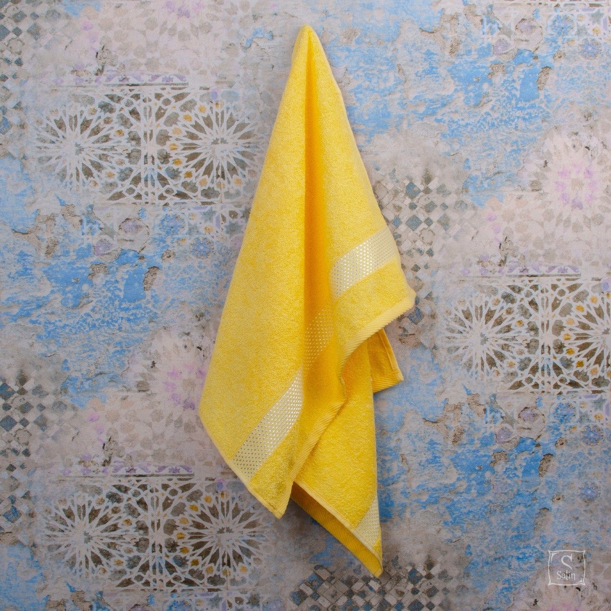 Рушник махровий Аїша Кришталики жовтого кольору виконаний зі 100% бавовни (махра), прикрашений гарним жакардовим бордюром, щільність - 400 г/м2.