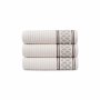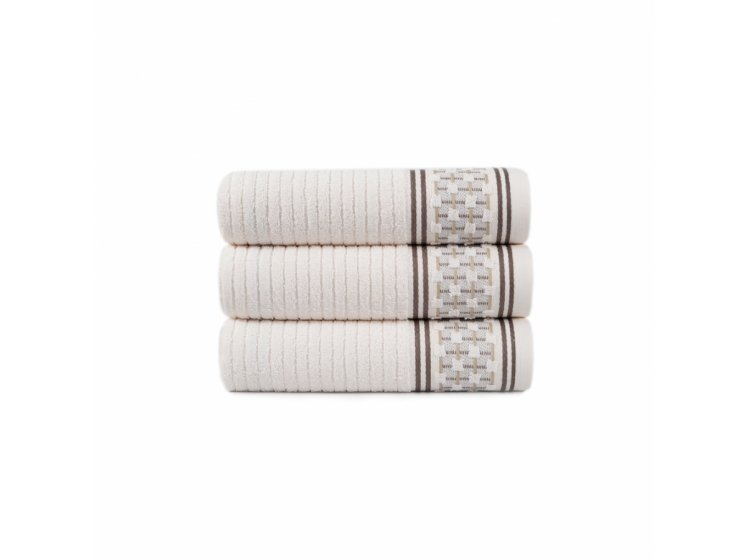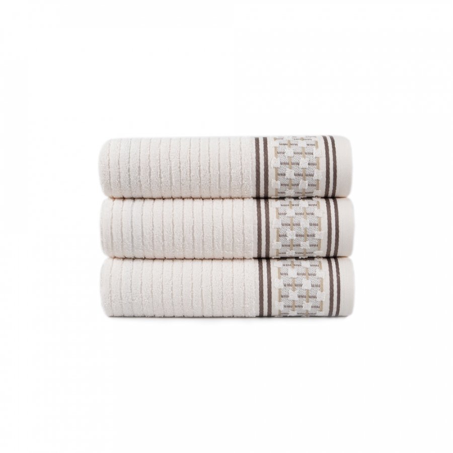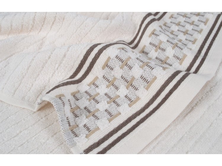 Махровий рушник Irya Jakarli Olwen ekru виконаний у кремовому кольорі з 95% бавовни, 5% поліестеру, високої щільності (480 гр/м²). Рушник оздоблений жаккардовим візерунком. Бавовна з якого виготовлено рушник натуральний матеріал, він добре вбирає вологу, швидко сохне, не викликає алергії та подразнень. Рушник має особливу міцність і дуже невибагливо у догляді. Крім того, воно має чудову зносостійкість і не накопичує статичної електрики.