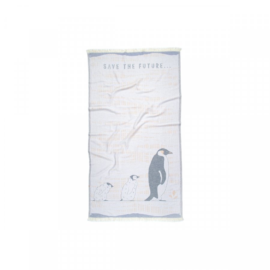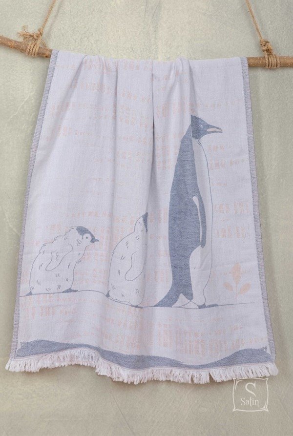 Пляжний рушник Irya Pestemal Penguin зі 100% бавовни виконаний у сіро-бежевих тонах з візерунком пінгвіни, прикрашений бахромою.