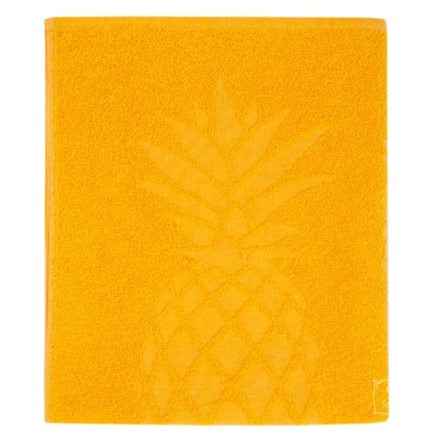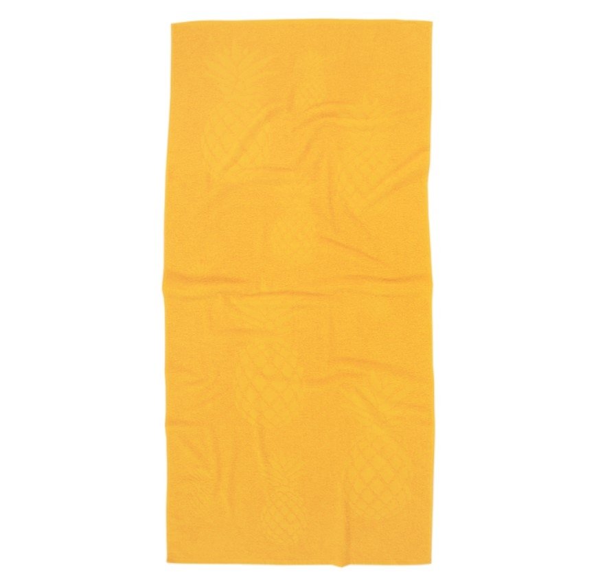 Пляжний рушник Plaj Pineapple sari від турецької торгової марки Sarah Anderson , виконано в жовтому кольорі з м'якої натуральної бавовняної махрової тканини гарної щільності (330 г/м²), що складається зі 100% бавовняної нитки, з оригінальним і стильним візерунком анана.