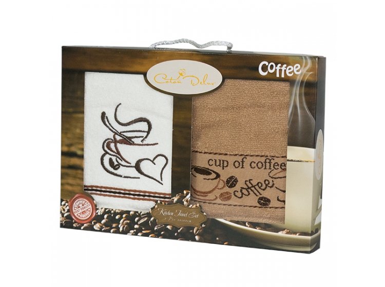 Кухонний набір Gursan Coffee 2 складається з двох якісних кухонних рушників, у двох кольорах, з тематичною "кавовою" вишивкою. Добре вбирають вологу, довго зберігають свій зовнішній вигляд після прання. Ідеально підходять для використання на кухні.