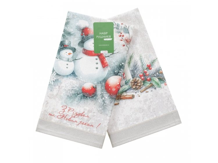 Набір із двох якісних кухонних рушників Home Line. Різдвяні подарунки з красивим новорічним дизайном. Добре вбирають вологу, довго зберігають свій зовнішній вигляд після прання. Ідеально підходять для використання на кухні.