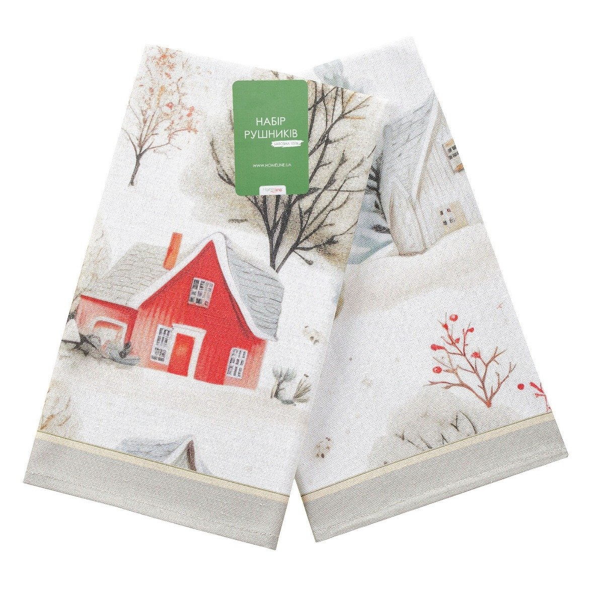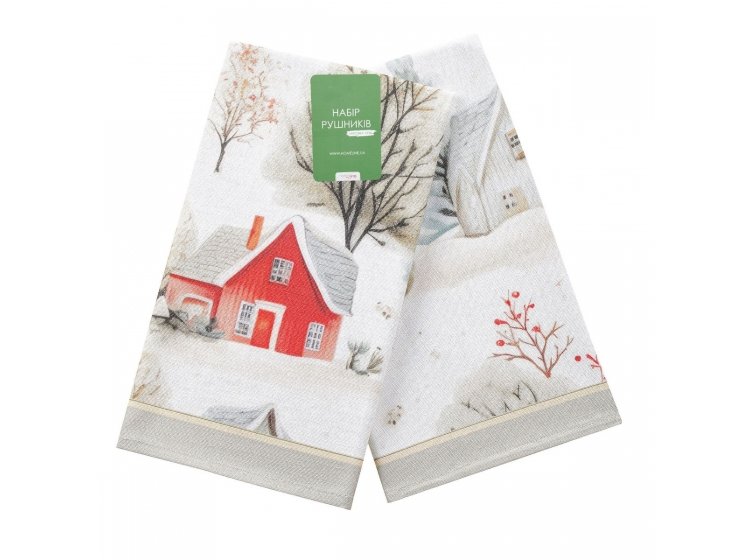 Набір із двох якісних кухонних рушників Home Line. Зимовий святковий містечко з красивим новорічним дизайном. Добре вбирають вологу, довго зберігають свій зовнішній вигляд після прання. Ідеально підходять для використання на кухні.