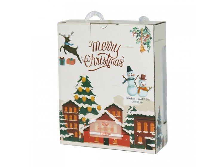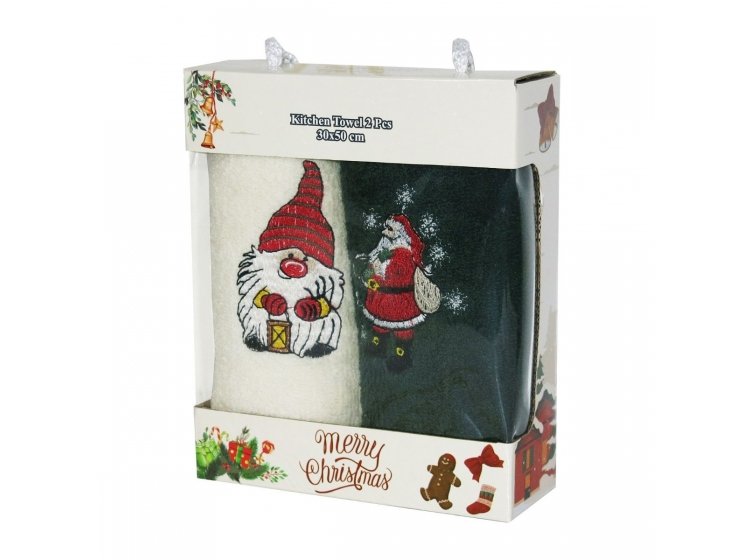 • Новорічний подарунковий набір Santa 2025 07 від турецької ТМ Gulcan складається з двох махрових кухонних рушників зі 100% бавовни.