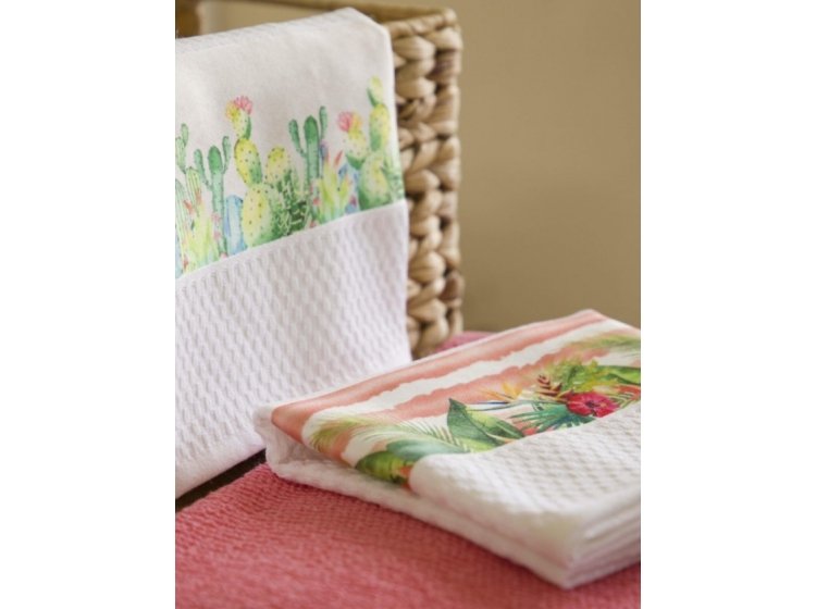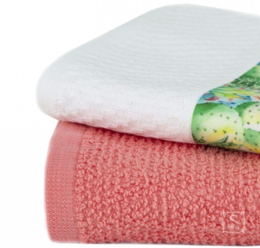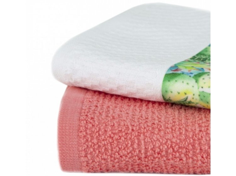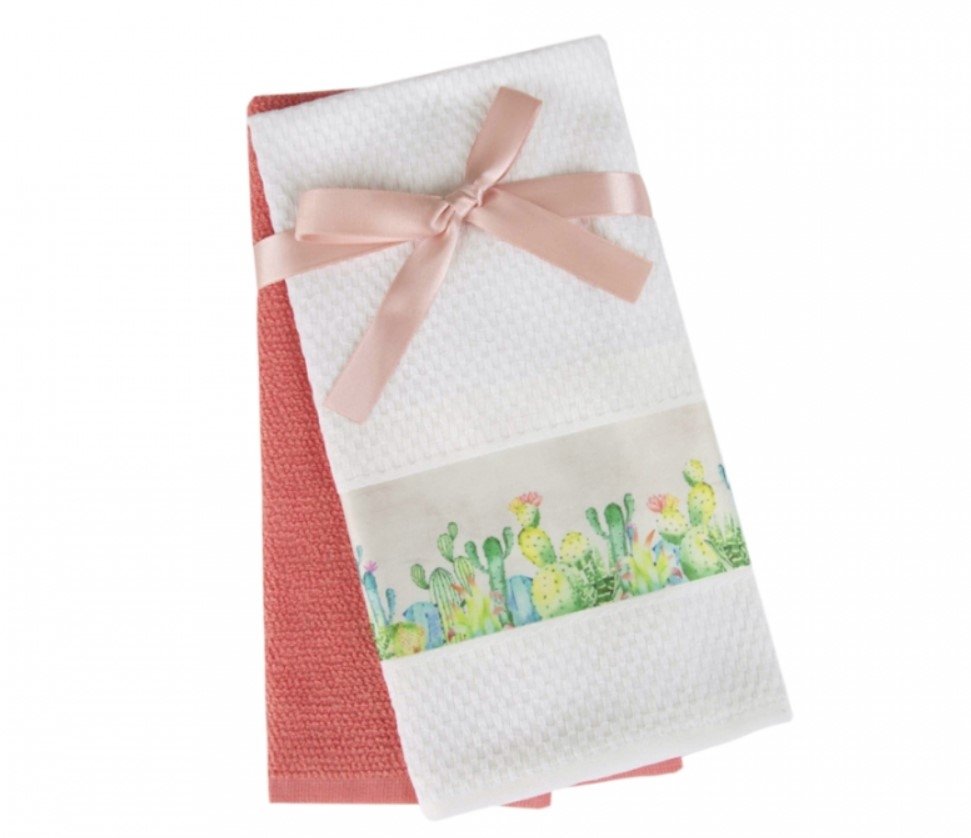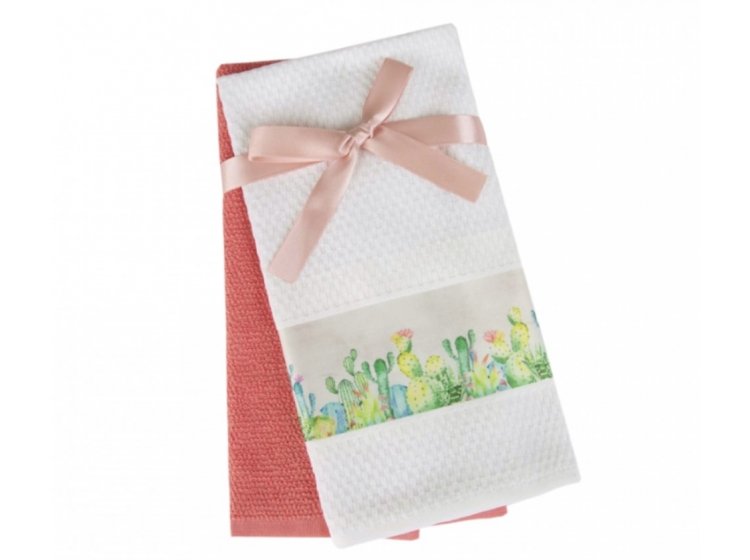 Набір кухонних рушників Ella від турецької торгової марки Home And More складається з рушників двох моделей: білого кольору з барвистим принтом на бордюрі та однотонного кольору фуксію, які відмінно доповнюють один одного у кольоровій гамі.