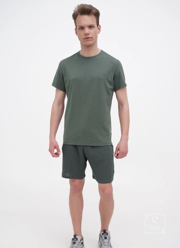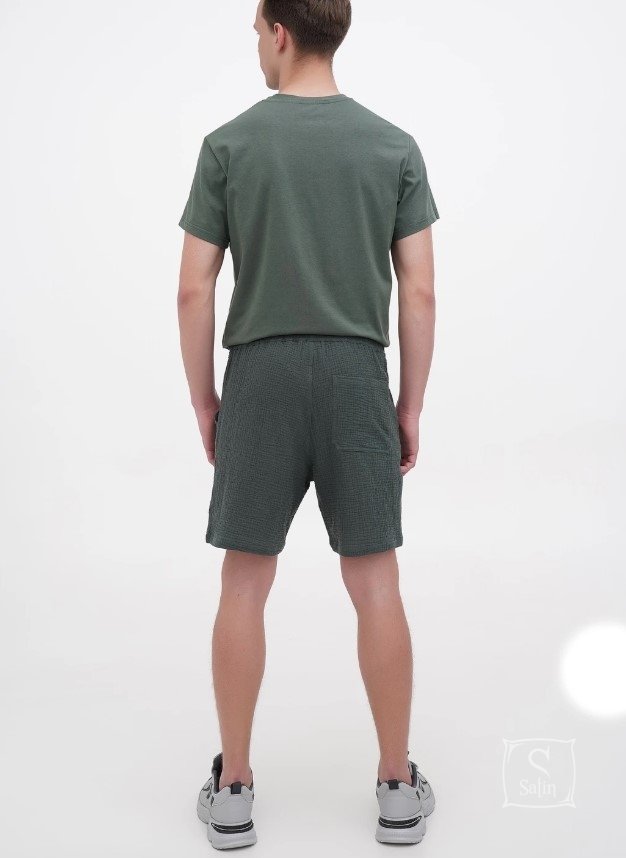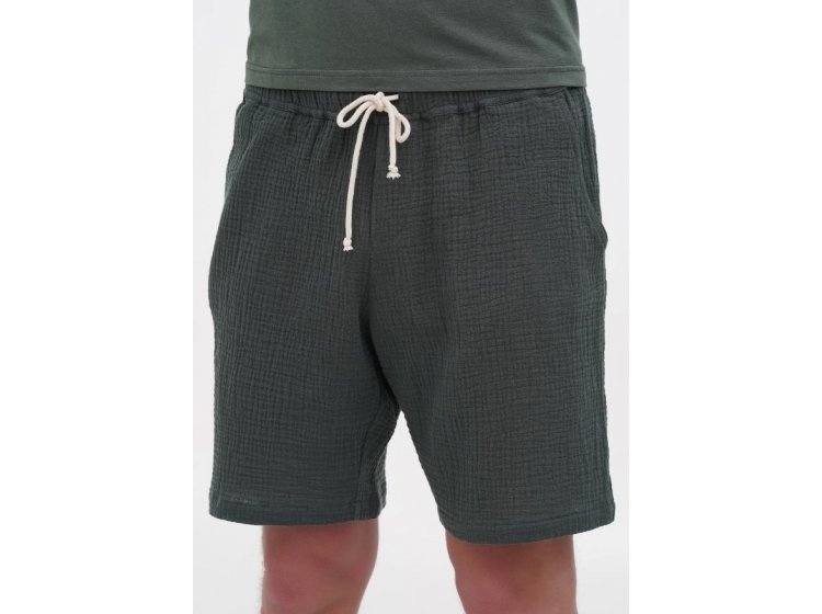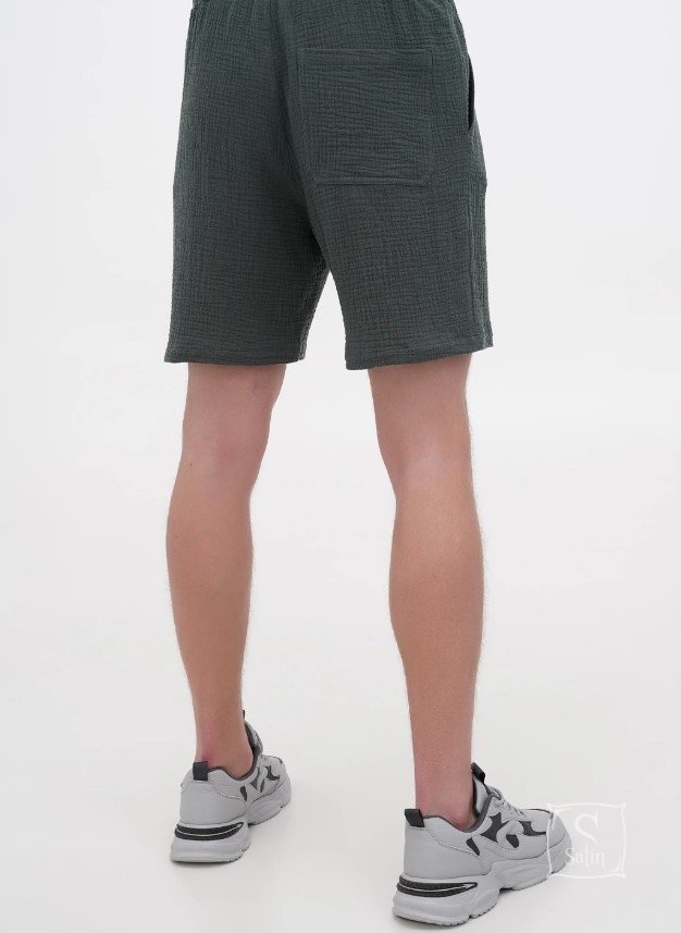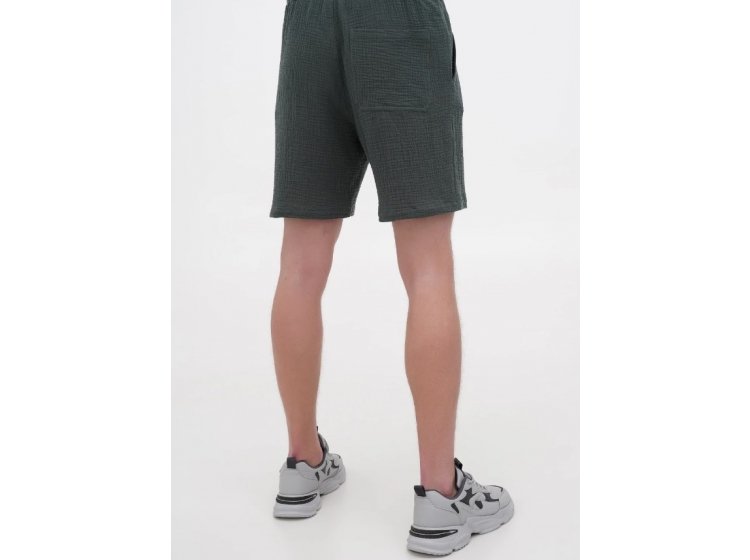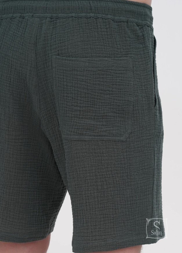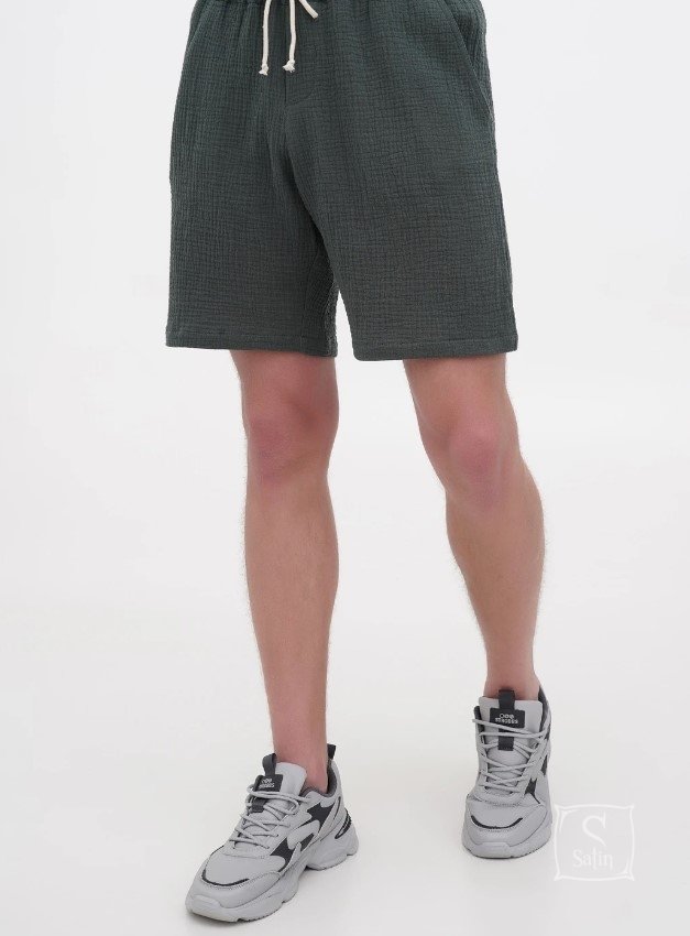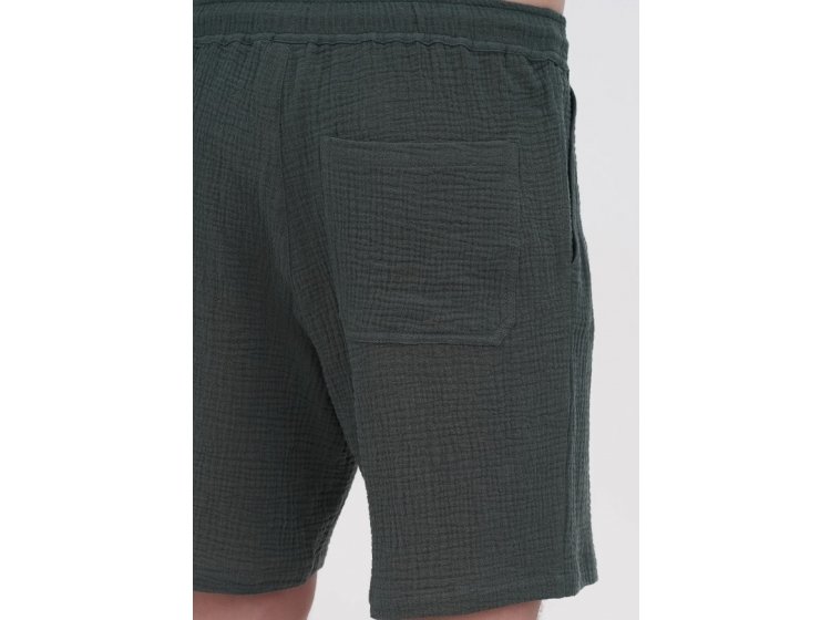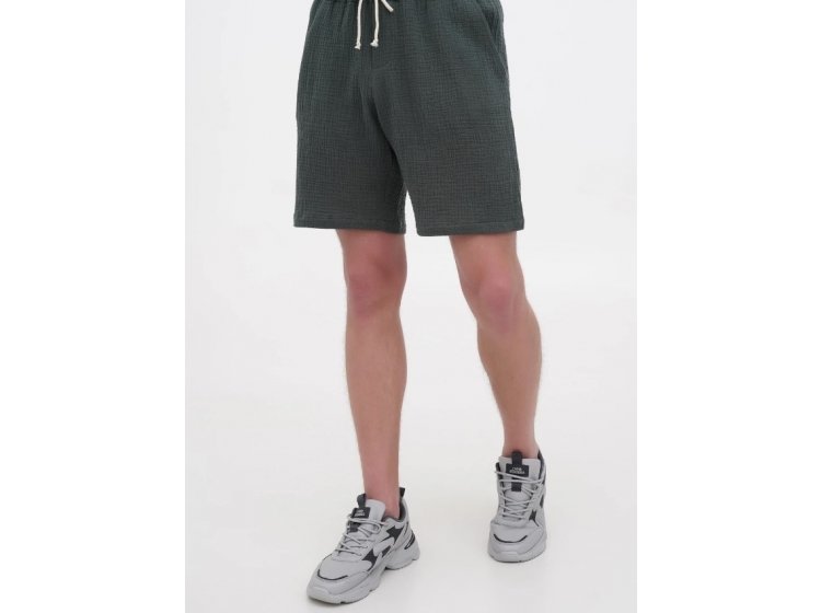 Муслінові чоловічі шорти German Volf 23039 зеленого кольору - універсальні та практичні, ідеально поєднуються з базовими футболками чи майками. Модель шорт класичного прямого крою, пояс на резинці із зав'язками. Виріб пошитий з боковими кишенями з боків .