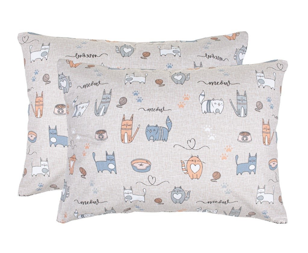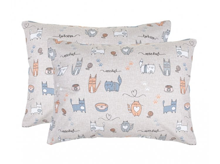 Котяча Радість бежевий складається з 2-х наволочок, виконаних з бязі (100% бавовни) щільністю 140 г/м², з принтом котики.