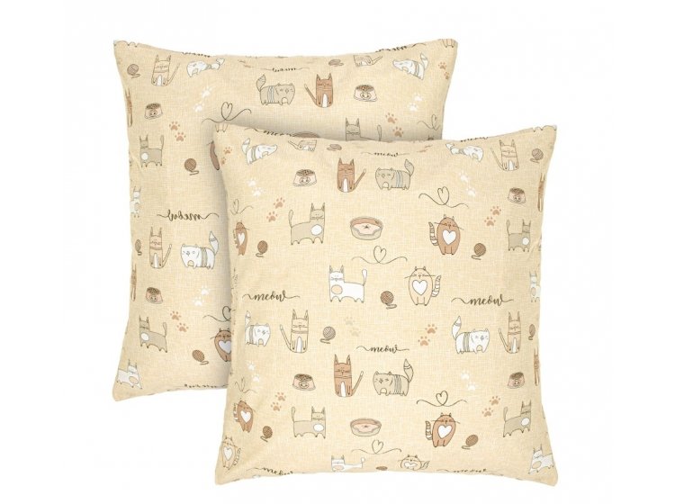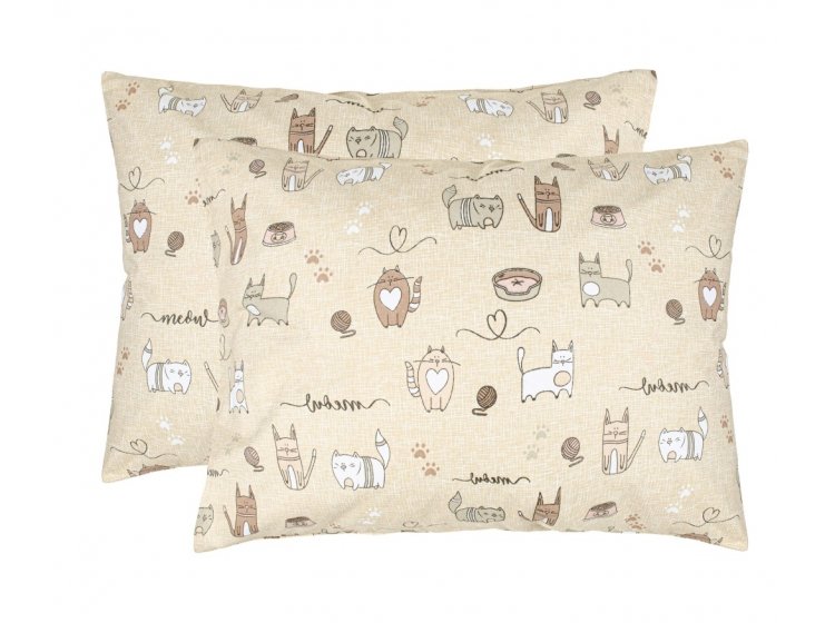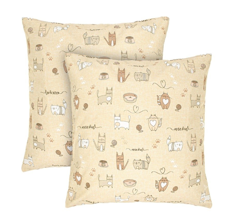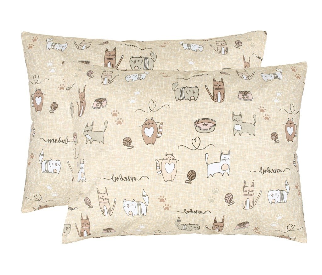Набір наволочок Home Line Котяча Радість піщано-рожевий складається з 2-х наволочок, виготовлених з бязі (100% бавовни) щільністю 140 г/м², з принтом котики.