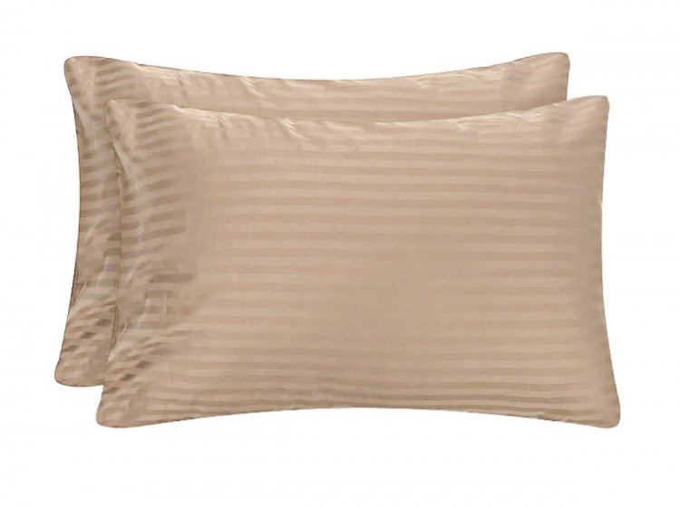 Набір наволочок Lighthouse коричневого кольору із високоякісного сатину з жакардовим візерунком смуга. Білизна із сатину довговічна і витримує велику кількість прань. Сатин має гладку, шовковисту лицьову поверхню, досить щільний і блищить.