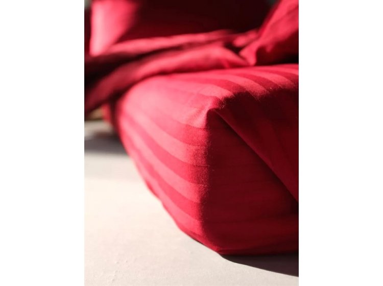 Набір наволочок Lighthouse червоного кольору із високоякісного сатину з жакардовим візерунком смуга. Білизна із сатину довговічна і витримує велику кількість прань. Сатин має гладку, шовковисту лицьову поверхню, досить щільний і блищить.