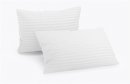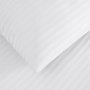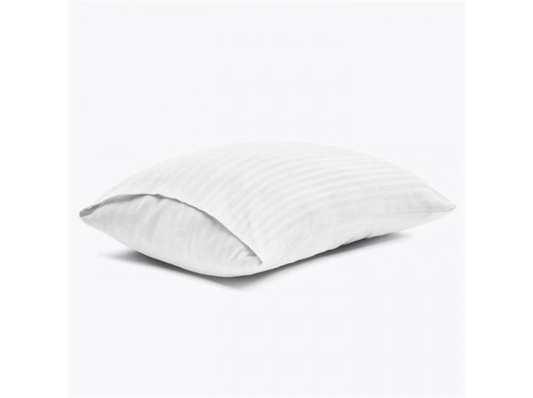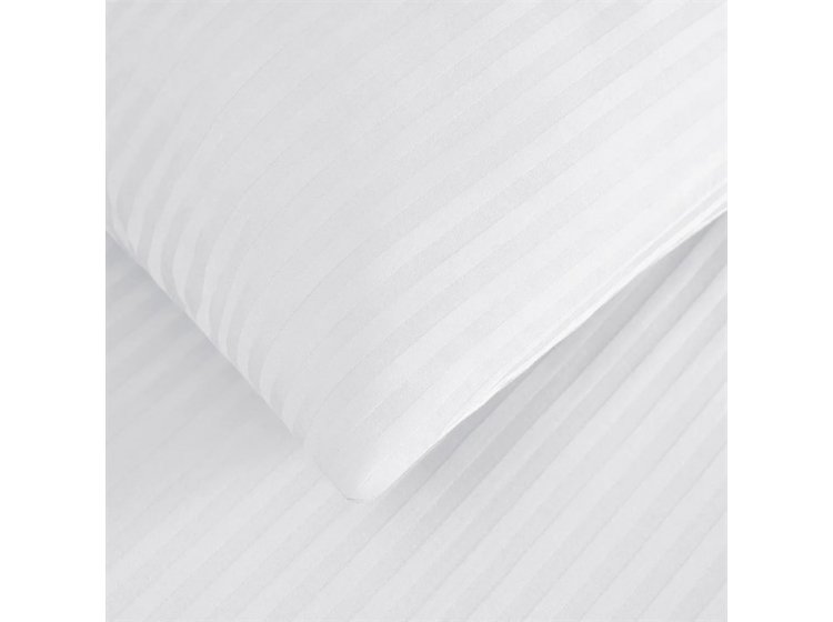Набір наволочок Lighthouse білого кольору із високоякісного сатину з жакардовим візерунком смуга. Білизна із сатину довговічна і витримує велику кількість прань. Сатин має гладку, шовковисту лицьову поверхню, досить щільний і блищить.