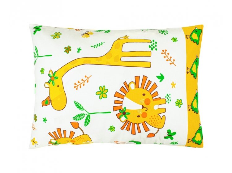 • Наволочка дитяча Home Line Мадагаскар виконана з бязі (100% бавовни) гарної щільності 140 г/м², у різнокольорових тонах із малюнком африканських тварин.
