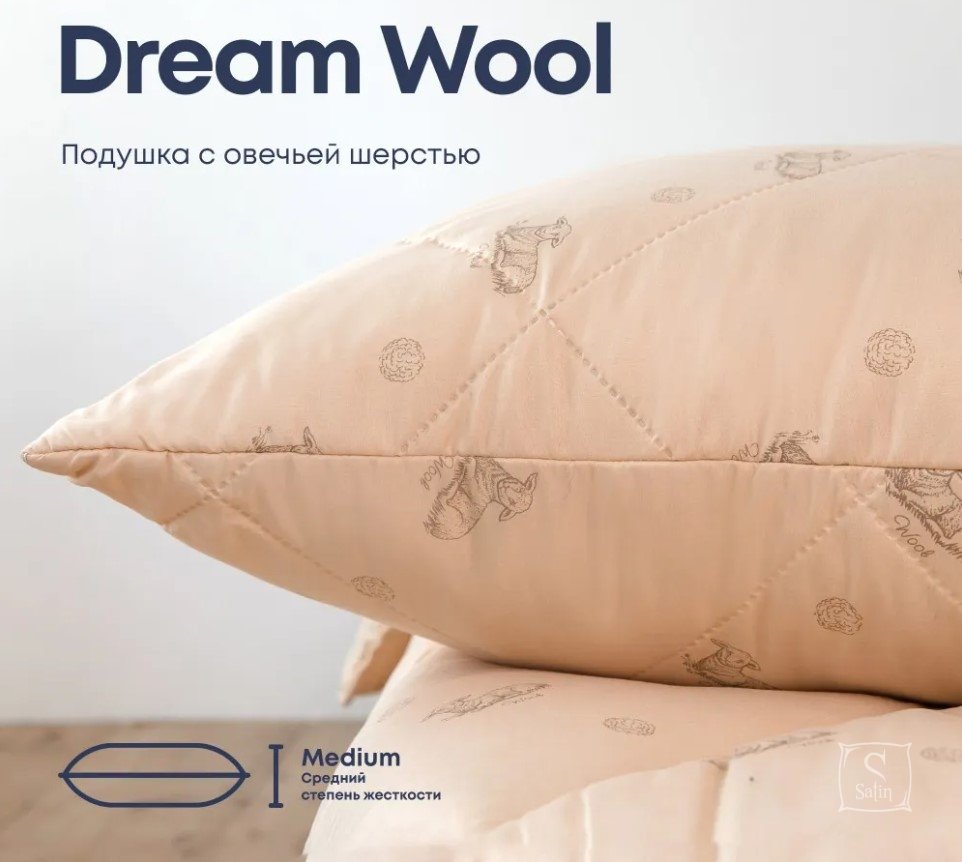 Подушка з овечою шерстю Dream Collection Wool - це ідеальне поєднання натуральності та сучасних технологій для забезпечення здорового та комфортного сну.