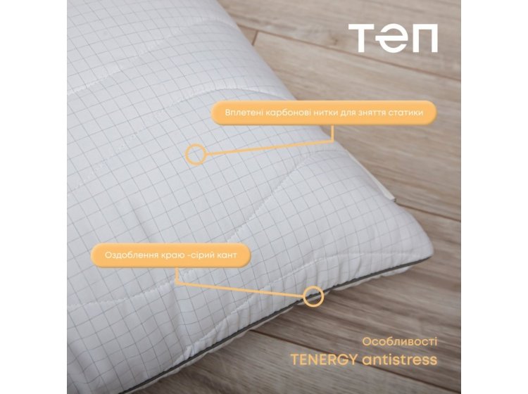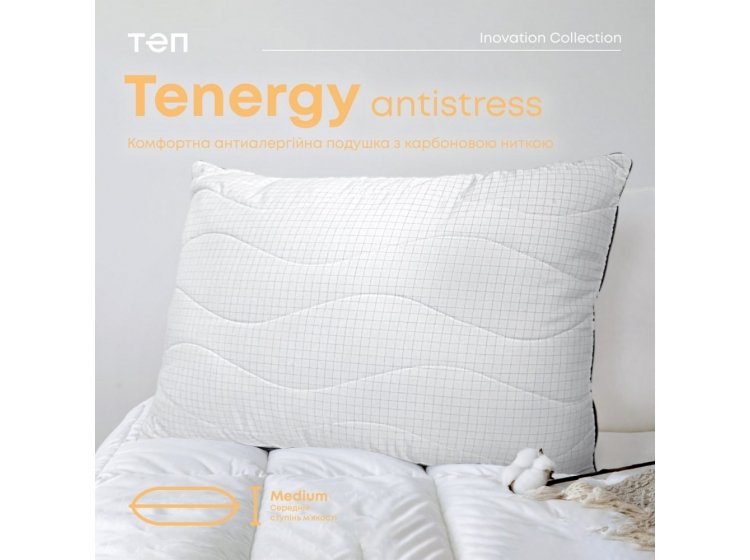 Відмінною особливістю подушки Природа Tenergy antistress є наявність карбонових ниток, які сприяють вивільненню статичної електрики, що дає людині спокійніший і глибший сон, а організму здатність швидше відновлюватися.