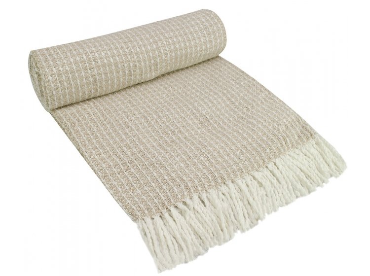 ХарактеристикиПлед Wooltex LANAVITTA АМАНДА з дрібним візерунком, бежевого кольору. Плед виготовлений з 70% вовни та 30% поліестеру, що робить його теплим та довговічним. Прикрашений бахромою, чудово підійде як накидка на ліжко, тахту, можна ховатися в прохолодний літній вечір. Виготовлено в Україні.