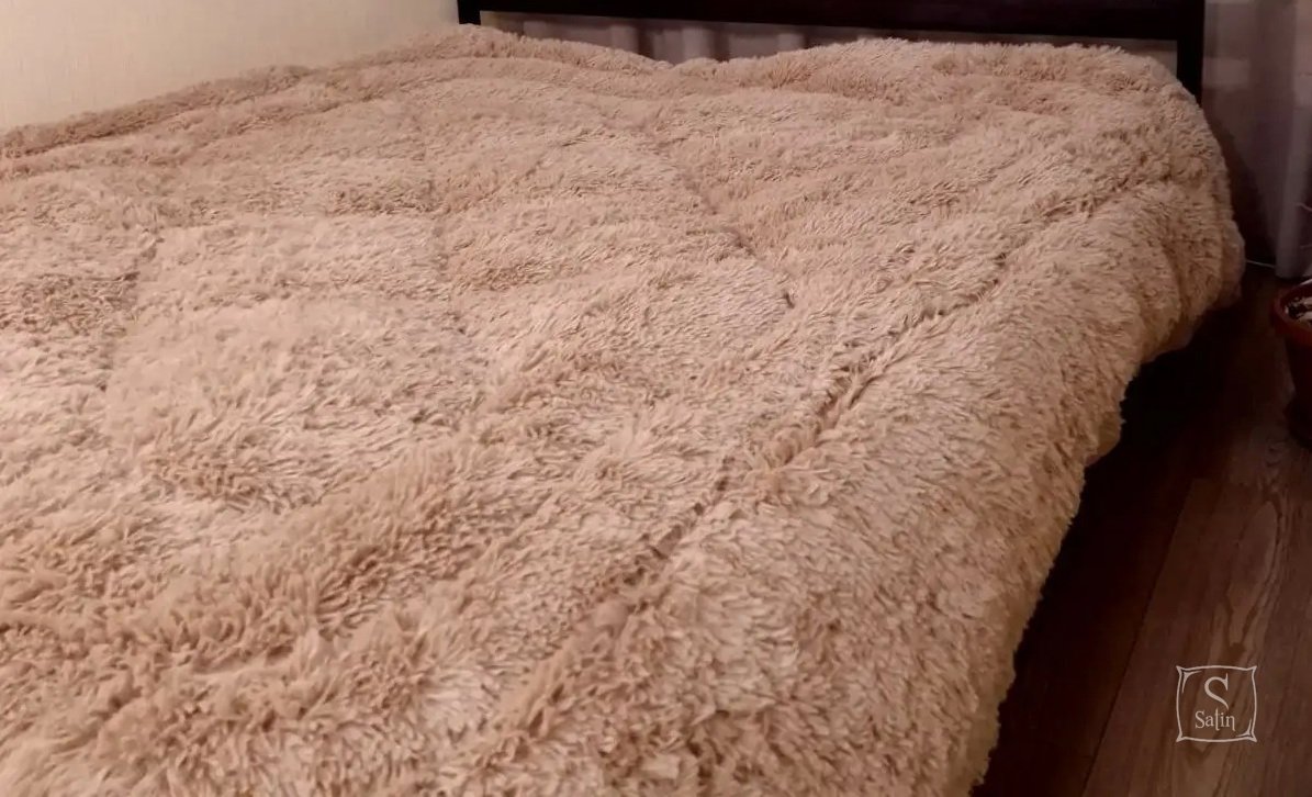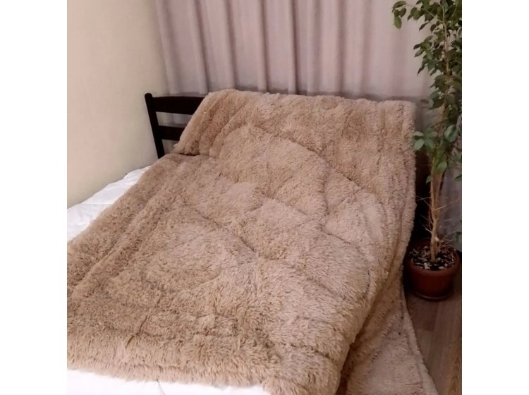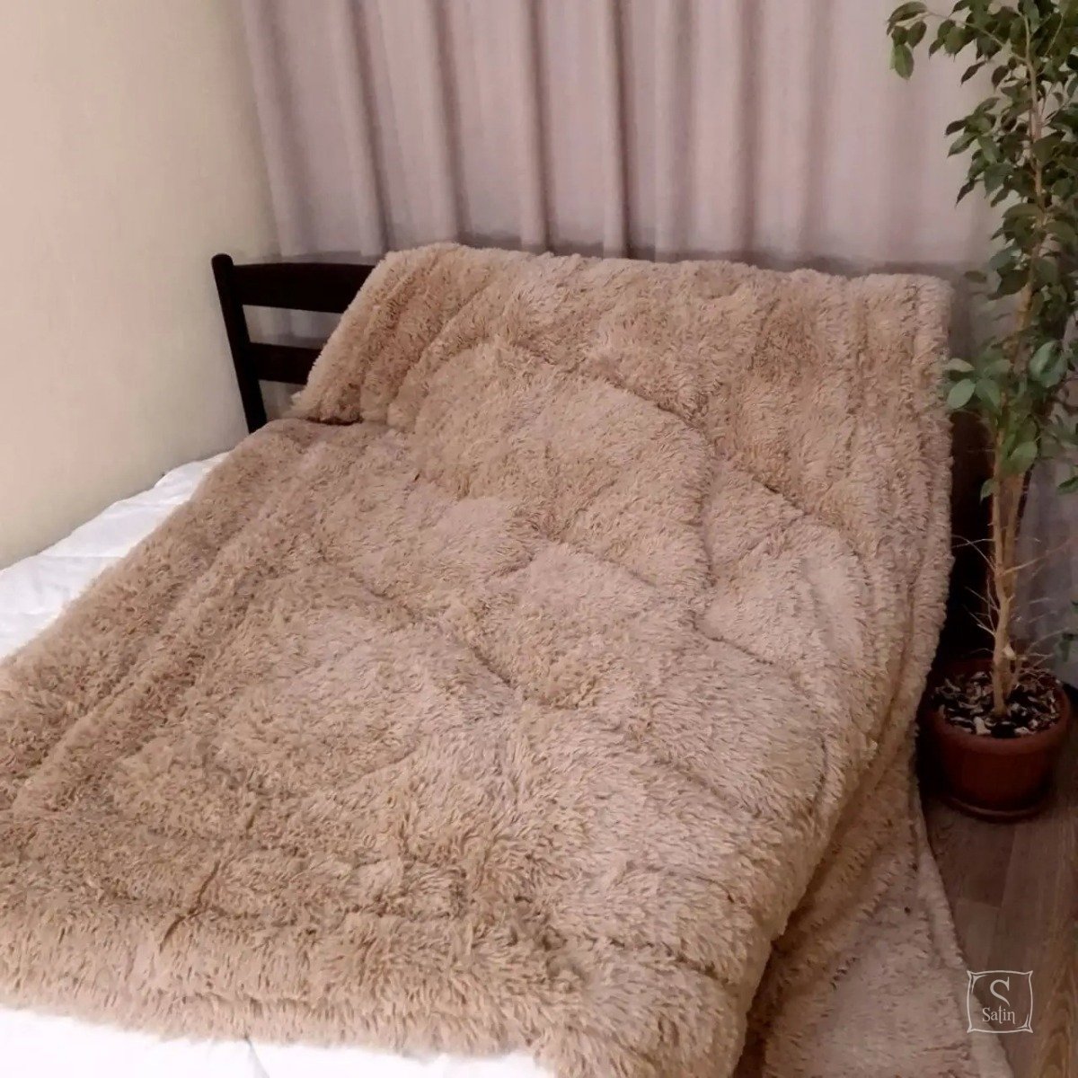 • Шикарне двостороннє зимове хутряне покривало Koloco Ведмедик бежевого кольору.