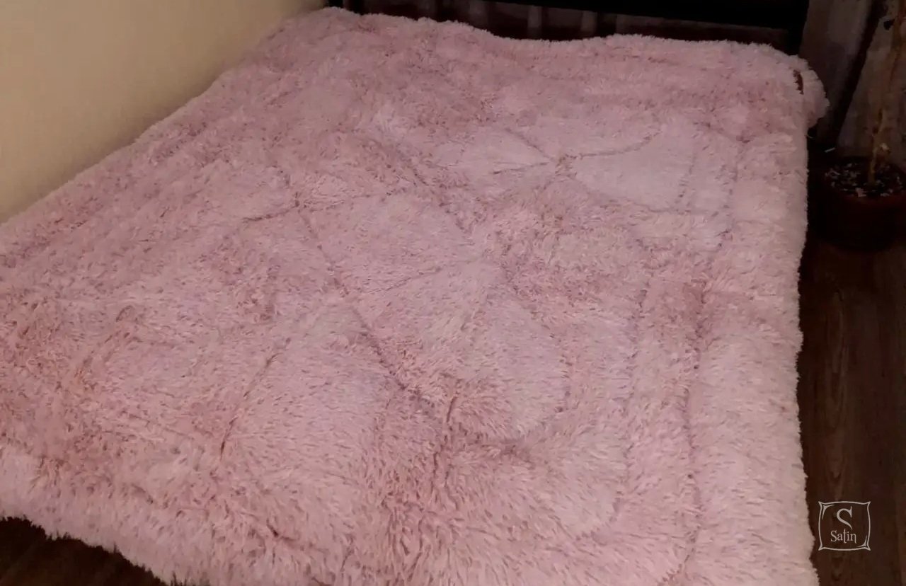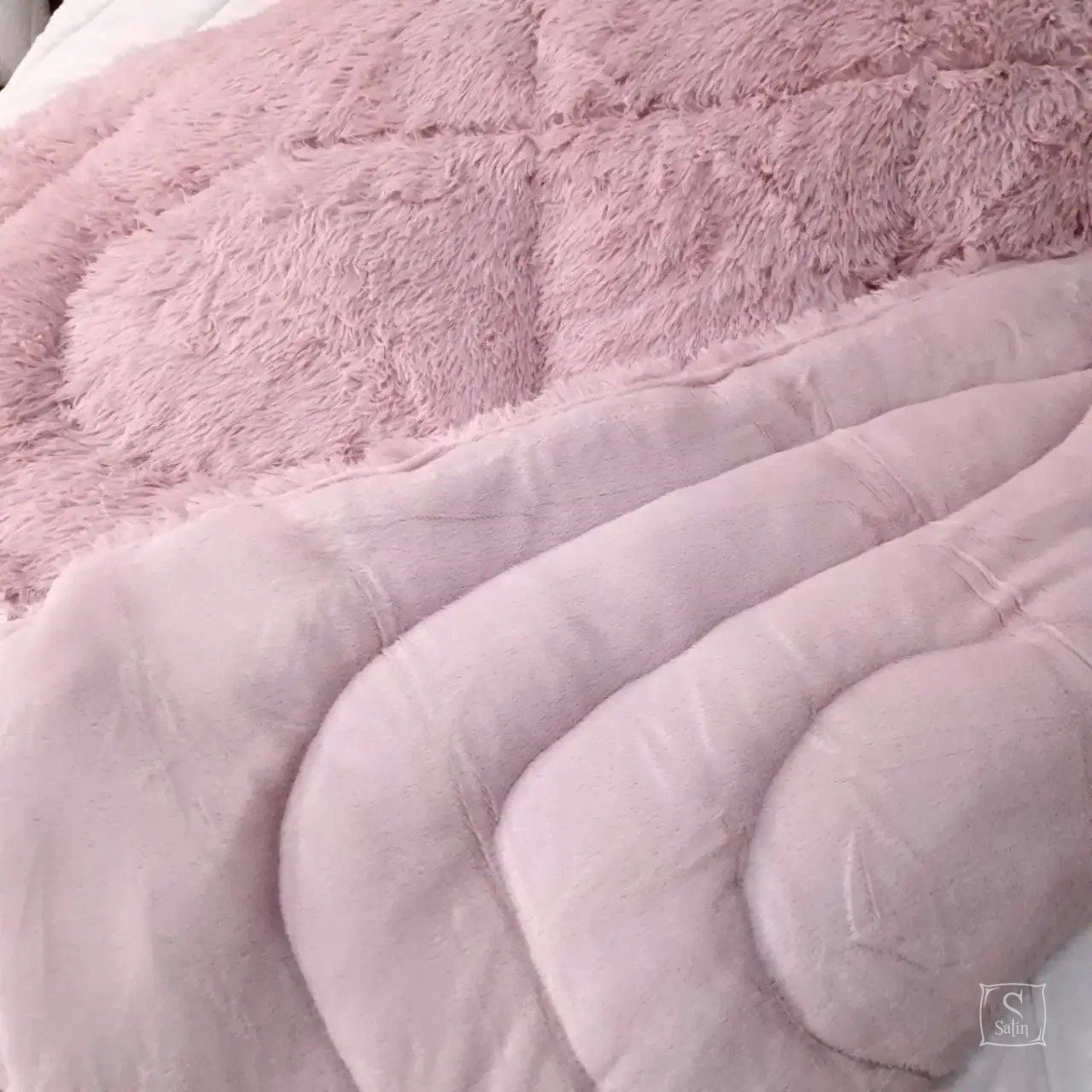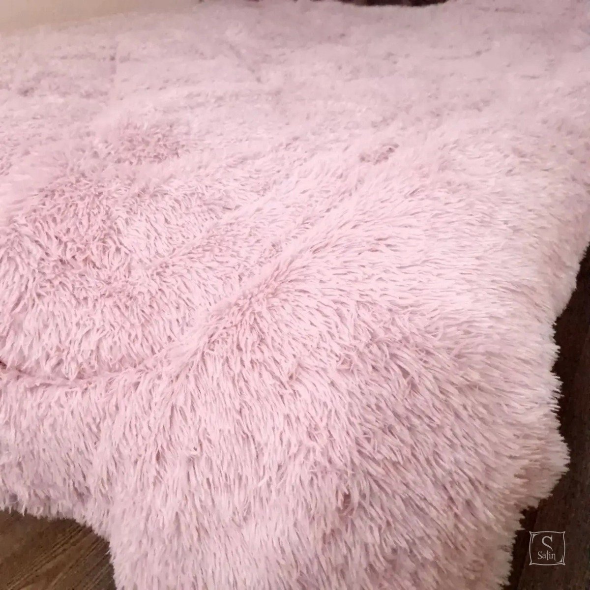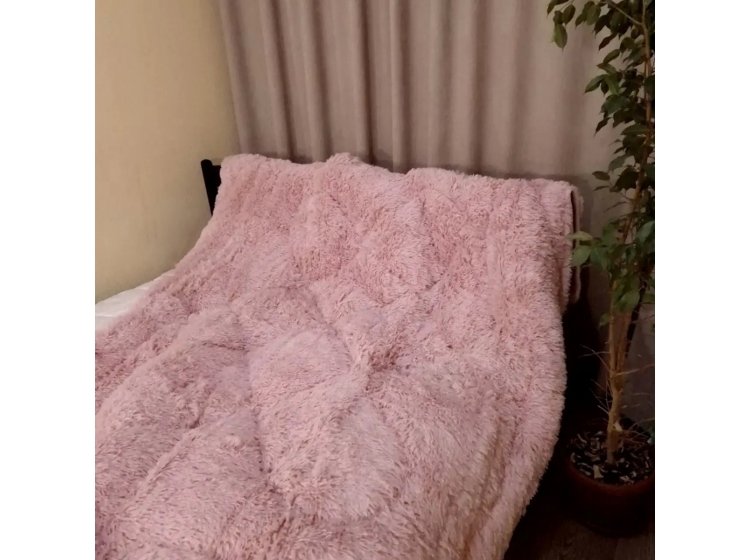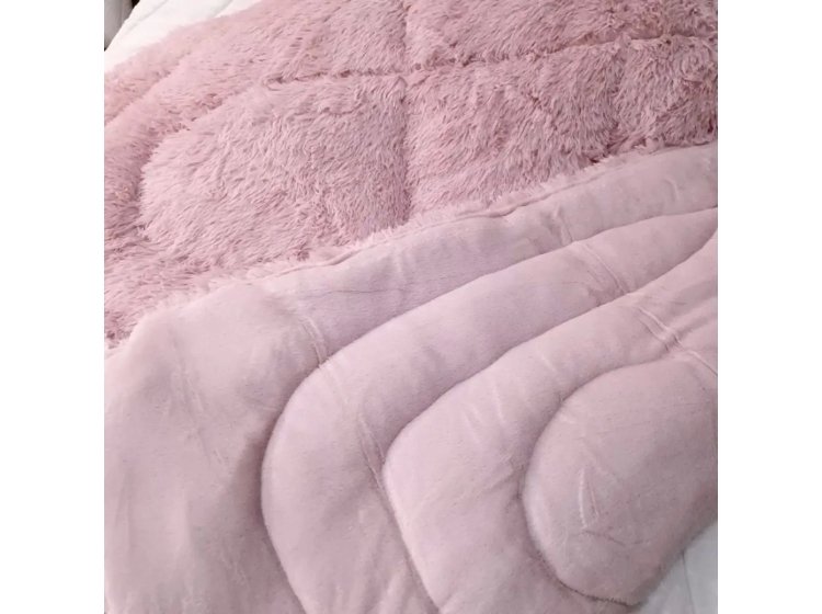 • Шикарне двостороннє зимове хутряне покривало Koloco Ведмедик рожевого кольору.