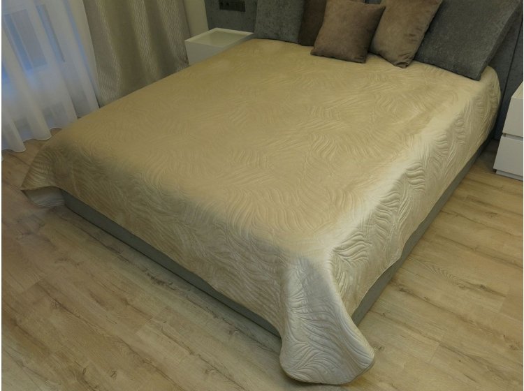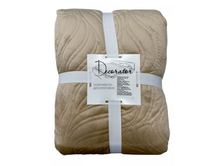 Ідеальне покривало для ліжка - ТМ Decorator Листя велюрове, бежевого кольору , надасть вашій спальні неповторний стиль. Особливістю цього покривала є ультразвукова стібка аркуш. Цей сучасний спосіб створення стібки забезпечує високу міцність, а візерунок стає більш виразним і барвистим.