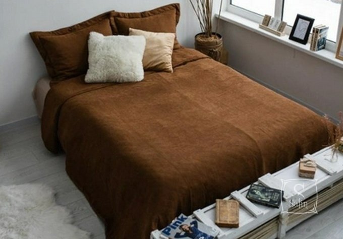 Покривало Arya Diamond V216 з наволочками виконані в коричневому кольорі з високоякісного 100% поліестеру , який на вигляд і на дотик не відрізняється від бавовни, перетворять спальню без істотних витрат. Покривало простегано з одного боку. Тканини з поліестеру легкі, міцні та зносостійкі. Покривало відмінно гармоніюватиме з інтер'єром вашої кімнати, прослужать довго і будуть такими ж міцними і красивими, як у день покупки.