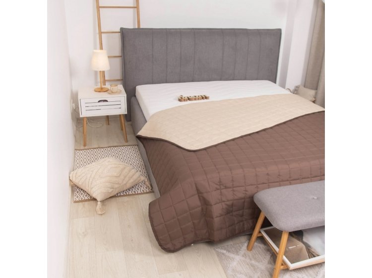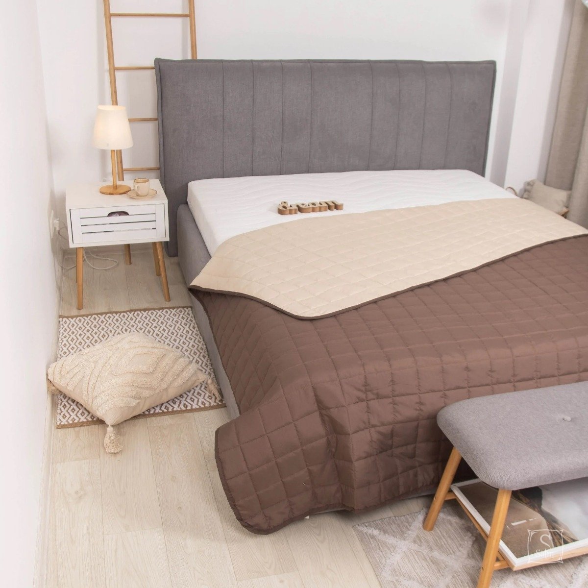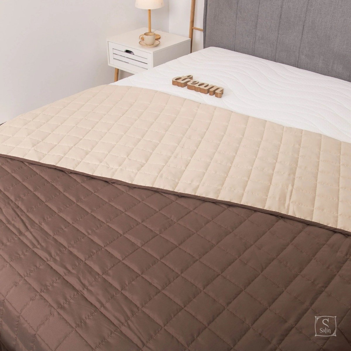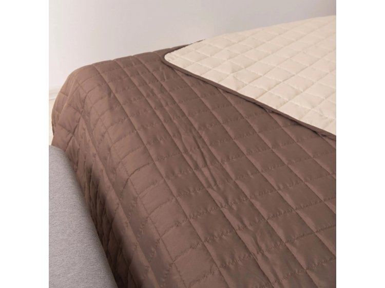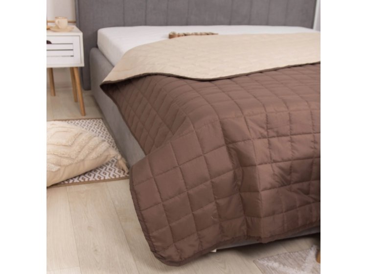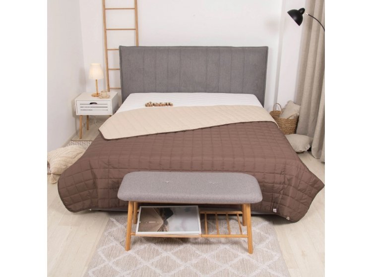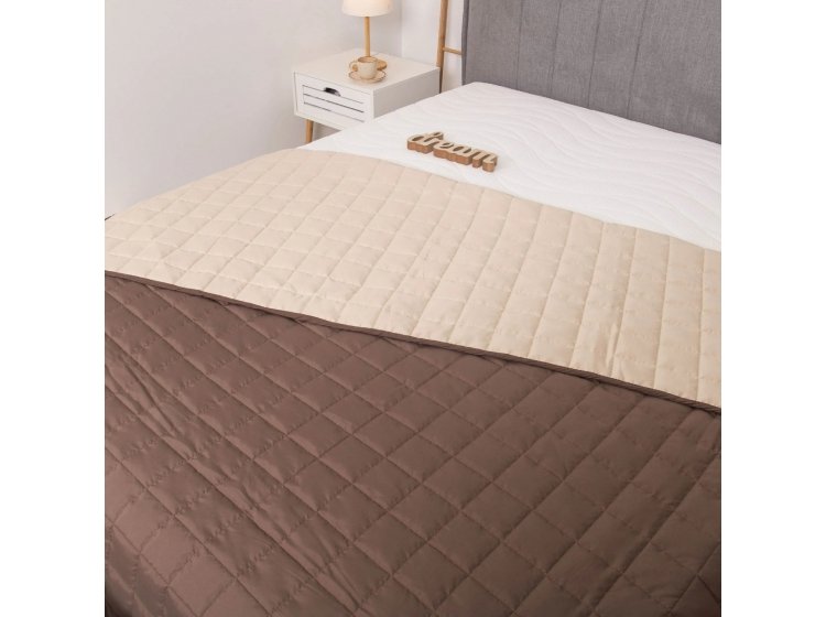 Ошатне двостороннє стьобане покривало Viluta Дует шоколадно-ванільного кольору виконано з полікотону. Наповнювач - холлофайбер. Може використовуватися в якості легкої ковдри, стане прикрасою спальні. Легке у догляді, можна прати.