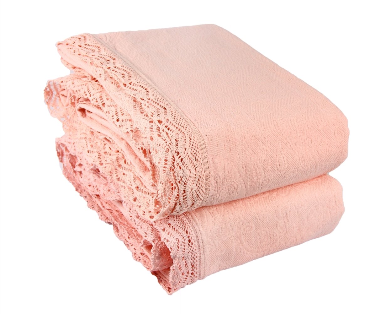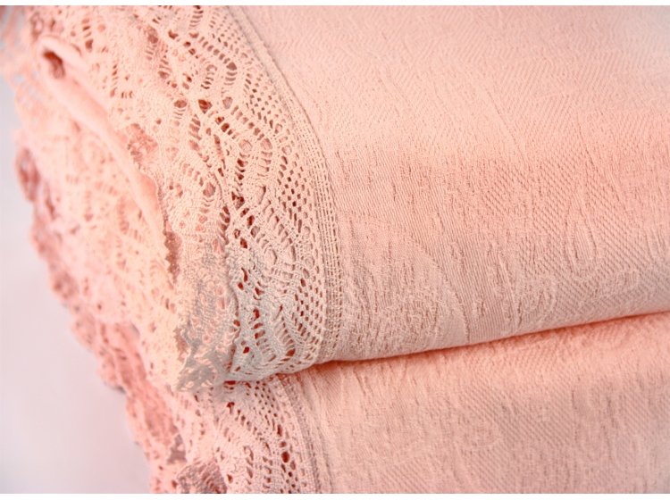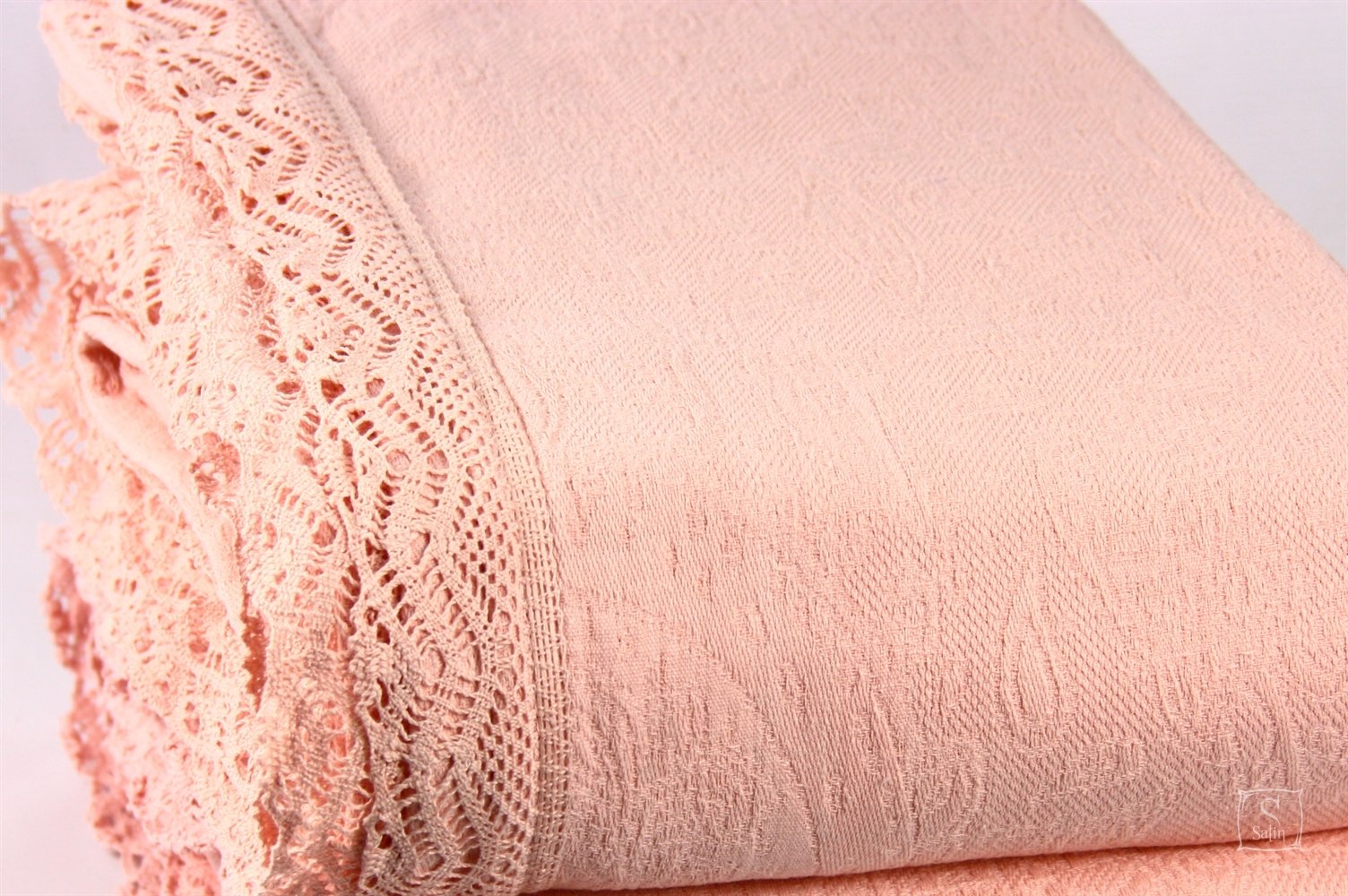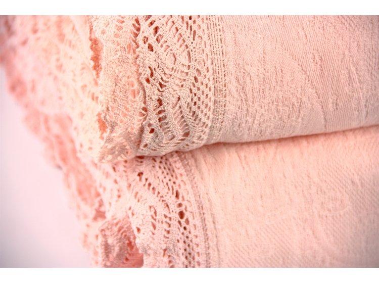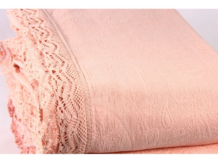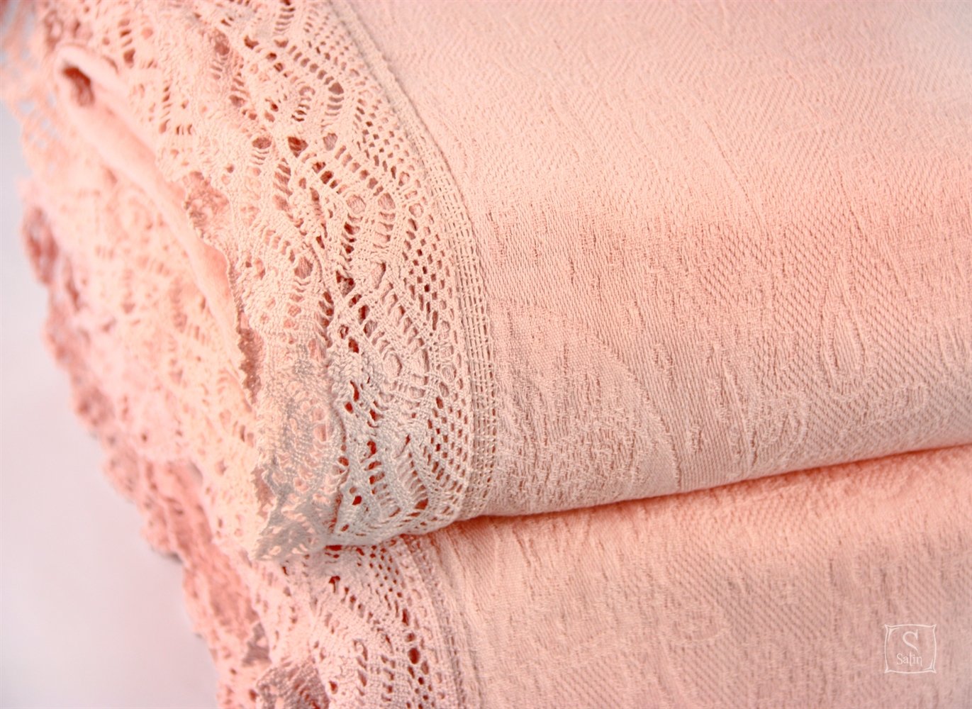 Покривало Lighthouse Shal пудра рожевого кольору з жакардовим візерунком оздоблено мереживом. Ніжне натуральне покривало прикрасить ваше ліжко і зігріє вас прохолодним вечором. Перевага складу зі 100% бавовни легко переносить прання і не втрачає своїх властивостей з часом.