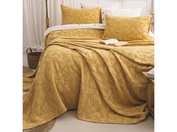 Жакардове покривало з наволочками Saheser Bambi sari зі 100% бавовни в тонах гірчичних, з візерунком абстракція.