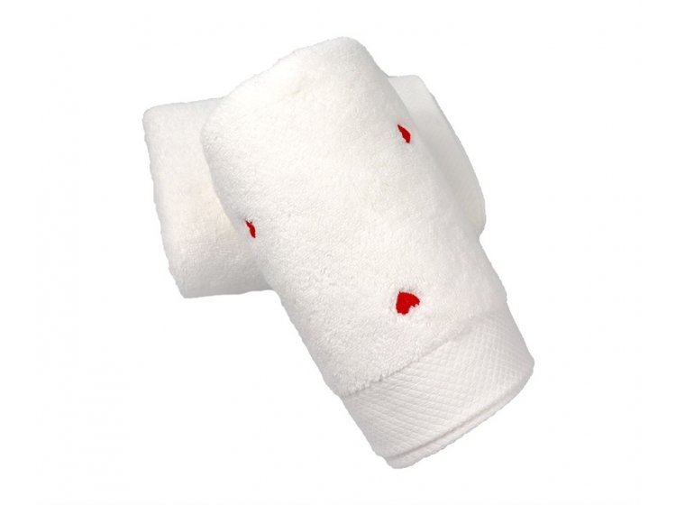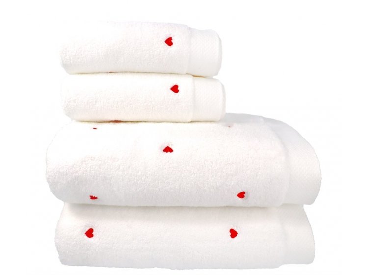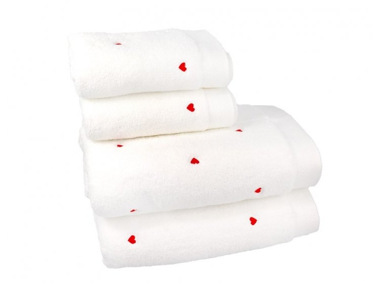 Рушник Hobby Microcotton Lubow/Love білого кольору з вишивкою сердечка - однотонний махровий рушник із класичним бордюром із щільної махри - 550 г/м2.