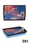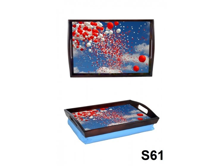 Дуже дорого виглядають підноси на подушці з малюнком на щільному глянцевому папері , нанесеним на меблеве ДВП, з ламінацією . Рамка підносу- вільха . Зовнішня поверхня лакована та яскрава вологостійка та термостійка. Такі таці будуть відмінним подарунком і потрібною функціональною річчю до будинку