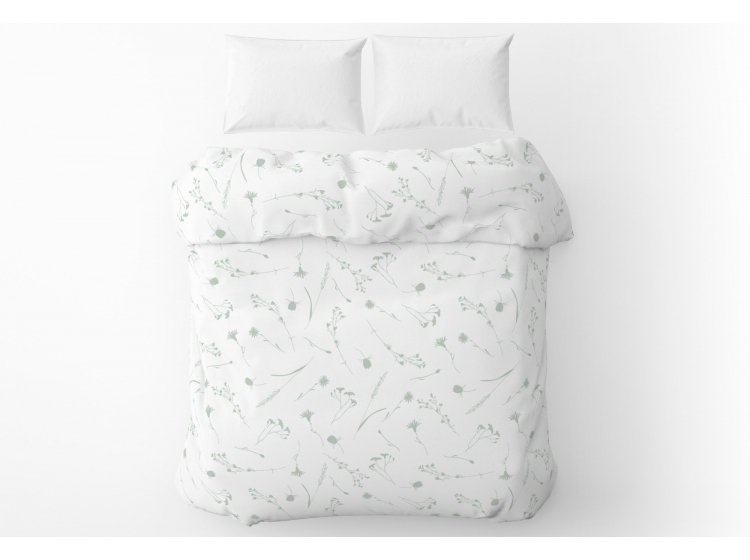 Безшовний підковдра Home line Волошки зелені на білому зі 100% бавовни. Натуральний матеріал бязь - приємний на дотик, добре пропускає повітря і вологу, досить щільний, зносостійкий витримує велику кількість прань.