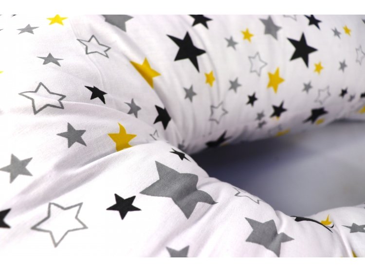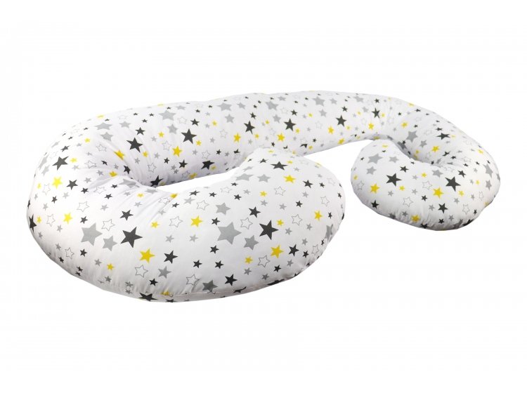 Подушка для вагітних LightHouse Baby Seashell Stars була розроблена для зручного сну жінки під час вагітності, для комфортного годування та відпочинку. Виконана в біло-сіро-жовтих тонах з принтом зірки.
