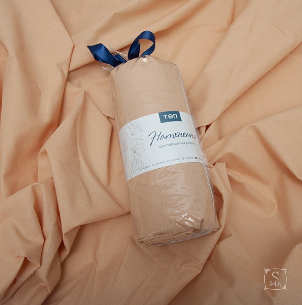 • Простирадло на резинці ТЕП кремового кольору зі 100% бавовни (ранфорс) щільно надівається на ліжко, не сповзає і не помається.