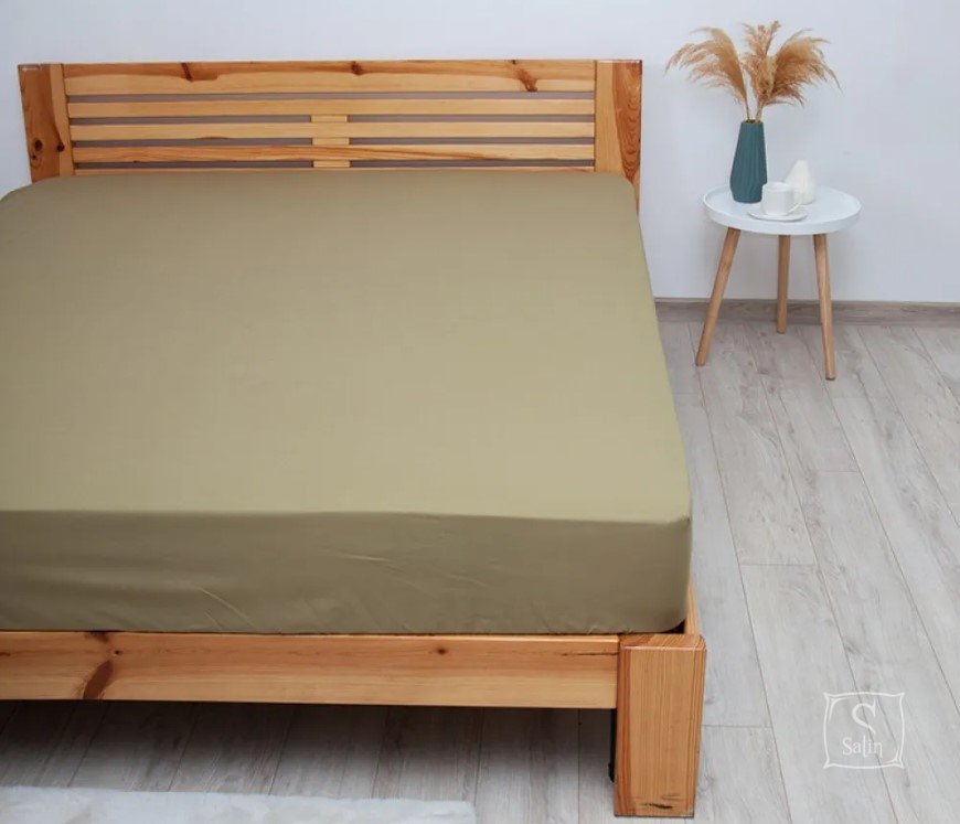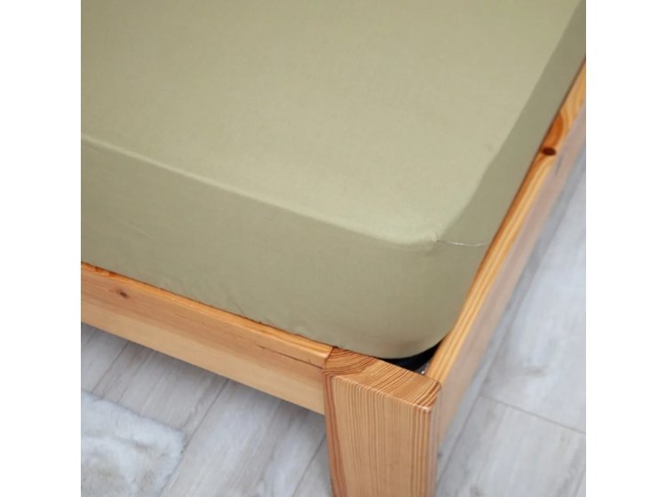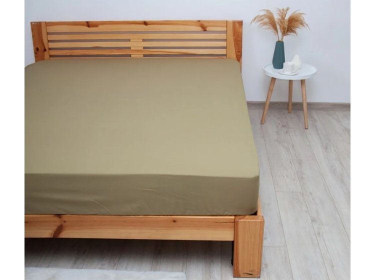 • Простирадло на гумці ТЕП оливкового кольору зі 100% бавовни (ранфорс) щільно надівається на ліжко, не сповзає і не помається.