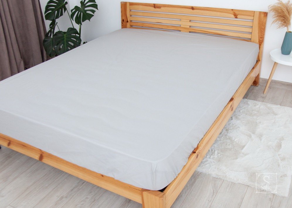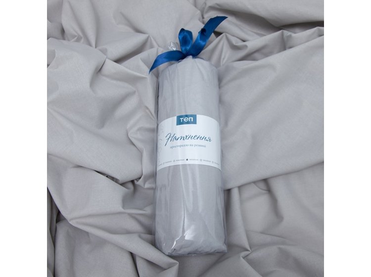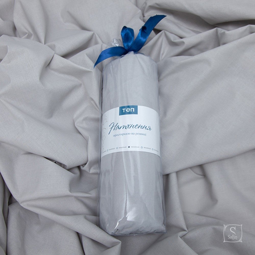 • Простирадло на резинці ТЕП світло-сірого кольору зі 100% бавовни (ранфорс) щільно надівається на ліжко, не сповзає і не меніться.