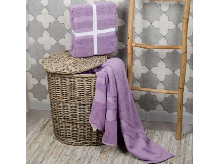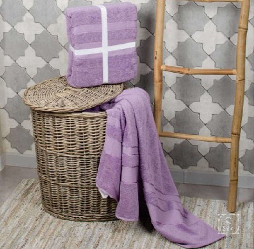 • Махрове однотонне простирадло Аїша пудрово-фіолетового кольору з класичним жакардовим бордюром.
