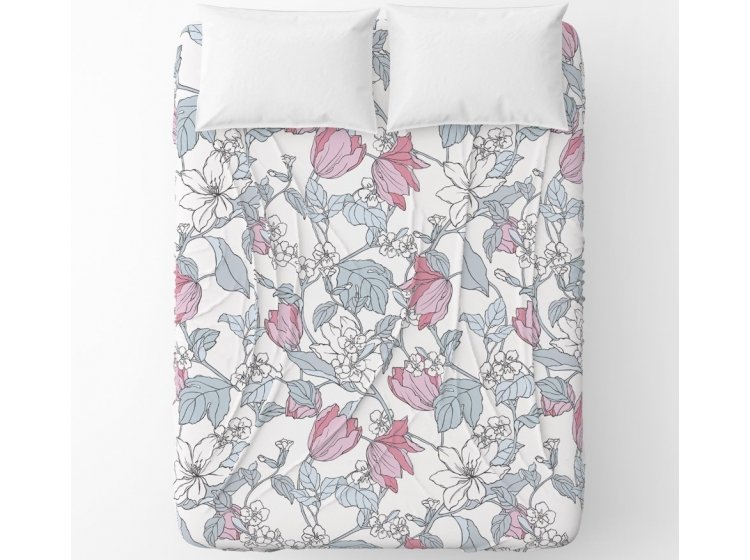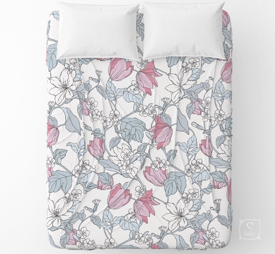 Простирадло Home Line Весняний Вечір сіро-рожевий виконана з бязі (100% бавовни) з квітковим візерунком.