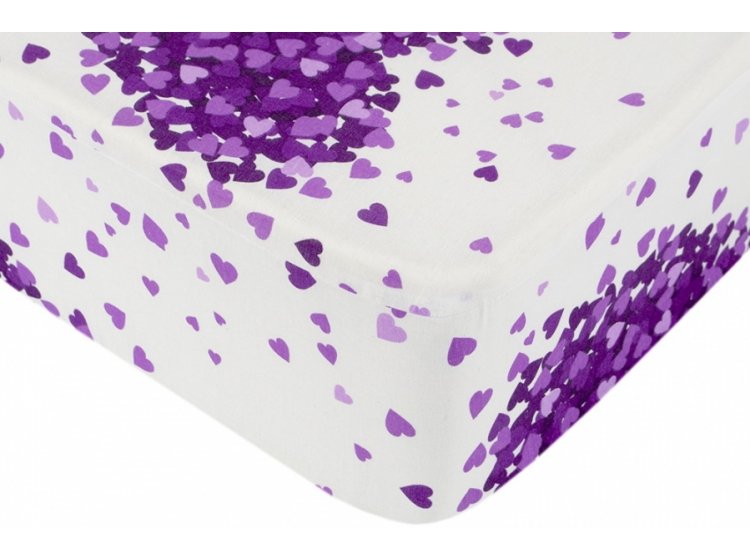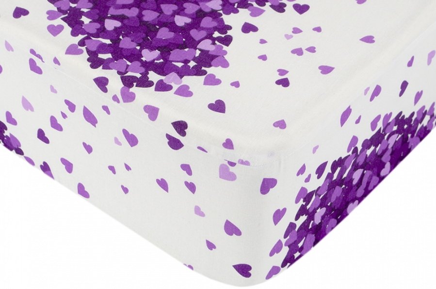 Простирадло на резинці Iris home виконане в біло-фіолетовому кольорі з візерунком серця зі 100% бавовни, ранфорс. Простирадло не скочується з матраца, легко одягається і надійно кріпиться за допомогою гумки по периметру. Приємна на дотик, щільна, практична та довговічна, добре витримує часті прання.